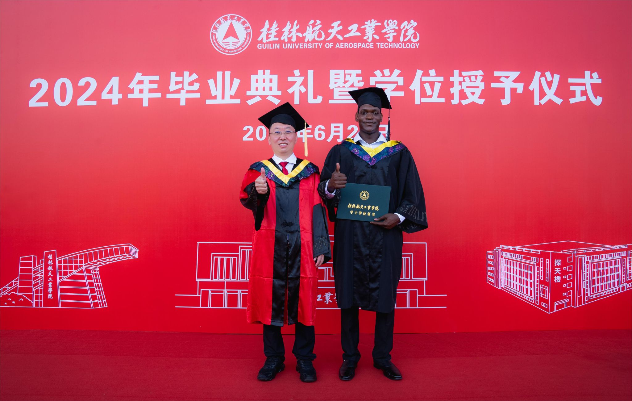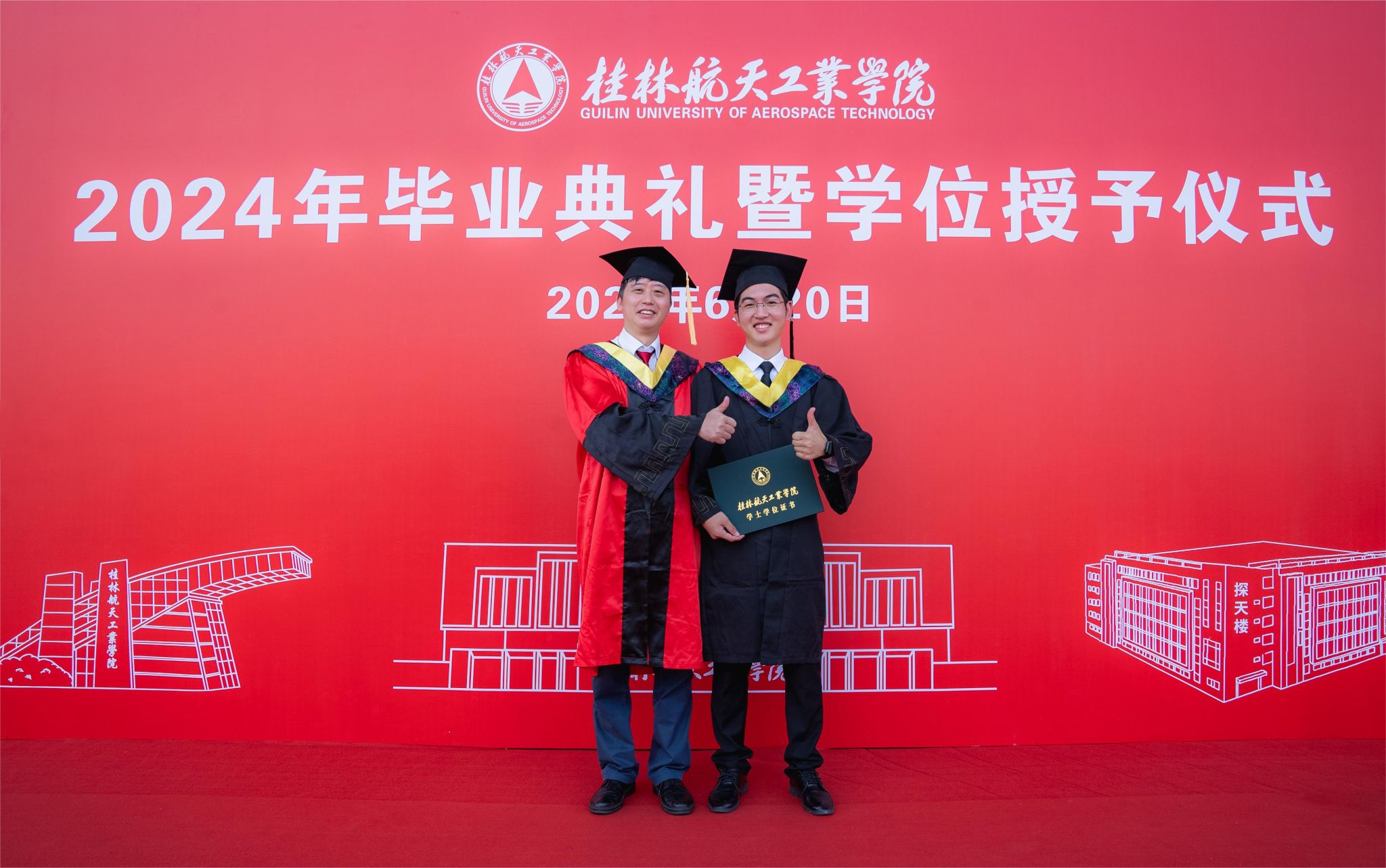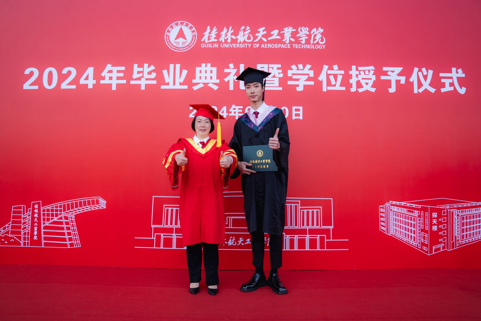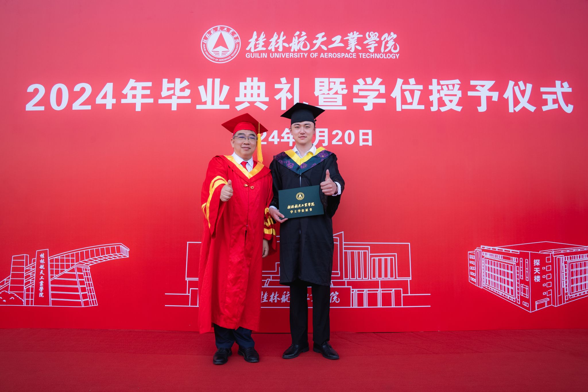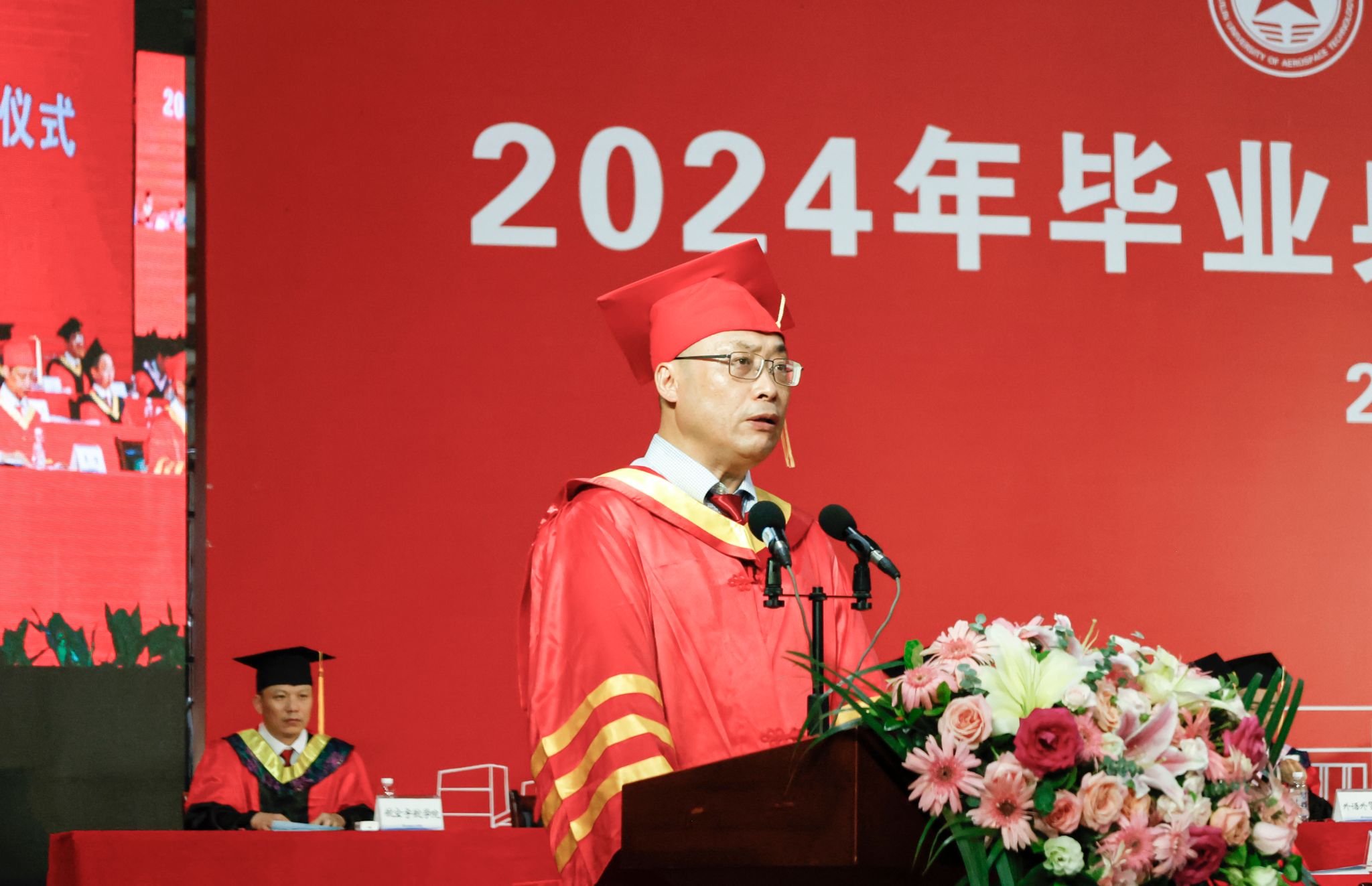校长吴尽昭发表了题为《保持本真,臻于至善》的致辞。他说,大家在桂航求学的日子里,我们留下了与祖国同行、与时代共进的记忆。我们一同亲历祖国极不平凡的新成就,一同见证并参与了学校的快速发展,也一同完成了个人成长的新跨越。当下,面对纷繁复杂的世界,消费主义和泛娱乐化盛行,人们容易迷失方向,忘记自己内心的真实需求。如何在这个时代安身立命、建功立业,创造出一番成绩?临别之际,他把“保持本真,臻于至善”八个字送给全体毕业生。一是要永葆纯真。曾国藩有云:“天下惟忘机可以消众机,惟懵懂可以祓不祥。”希望大家在未来能够坚守初心的本真,知行合一,说真话、干实事、下硬功,不摆“花架子”,不做“两面人”,实事求是、善始善终。二是要自信自立。希望大家在面对困难和质疑时,做一名自信的舵手,紧握生命的罗盘,以自信的姿态、自立的决心、自强不息的意志,向着心中的光辉彼岸坚定航行。三是要终身学习。希望大家毕业后在社会的大学里继续学习,掌握真才实学,增益其所不能,腹有诗书气自华,要让终身学习成为扬帆远航的动力,让增长本领成为青春搏击的能量。四是要坚守底线。希望大家常怀敬畏之心,堂堂正正做人、光明磊落做事,以云淡风轻面对得与失,以平静温和面对质疑与嘲笑,做到“有守”和“有为”有机统一。纯真使人真诚,自信使人笃定,学习使人明辨,底线使人坦荡,四者合一,方能做到“保持本真,臻于至善”。希望毕业生能够继续弘扬“艰苦奋斗,自强日新”的桂航精神,笃定“保持本真,臻于至善”的态度和行动,在全面建设社会主义现代化国家的新篇章中,在实现中华民族伟大复兴的中国梦中写下浓墨重彩的一笔!