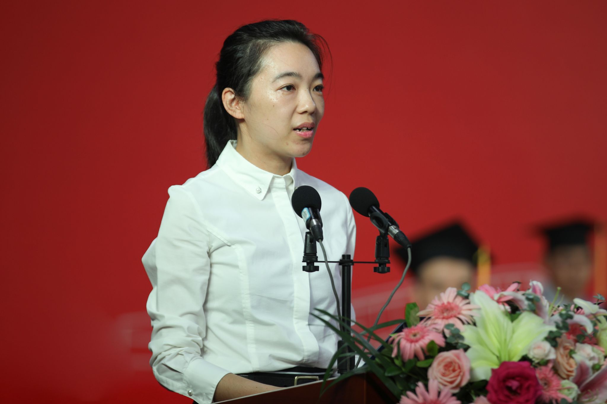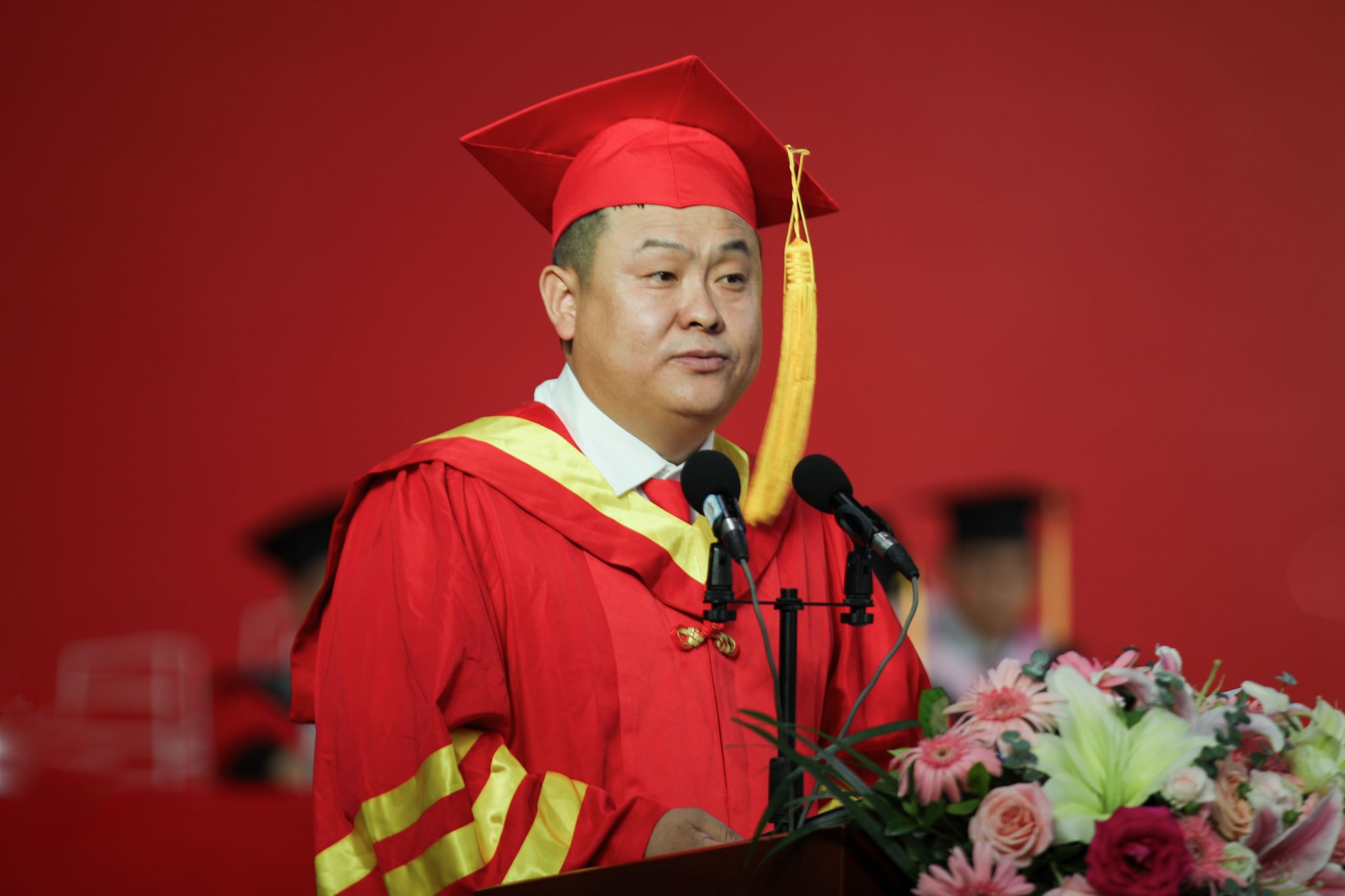 毕业典礼伴随着庄严的国歌声开始,李智代表学校宣读表彰文件,校领导和校友代表为毕业生获奖代表颁奖。