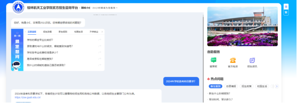 为扩大招生宣传范围,增加咨询答疑渠道,Beat365不断扩展各类宣传咨询渠道,2024年累计在110所高中投放宣传展板,部署更新了招生网、官方微信公众号、招生小程序、24小时在线智能问答、智能电话,参与了教育部阳光高考网招生宣传周及各地考试院组织的线上答疑。6月1日至7月2日,Beat365招生网访问量达6.6万人次,页面浏览量24万次,招生电话呼入1.3万人次,智能问答回复3万次、阳光高考网等各类平台人工解答700余次,累计在学校微信公众号推文16篇,阅读量达5.5万人次,官方抖音、视频号推送招生相关视频,累计浏览量超84万。