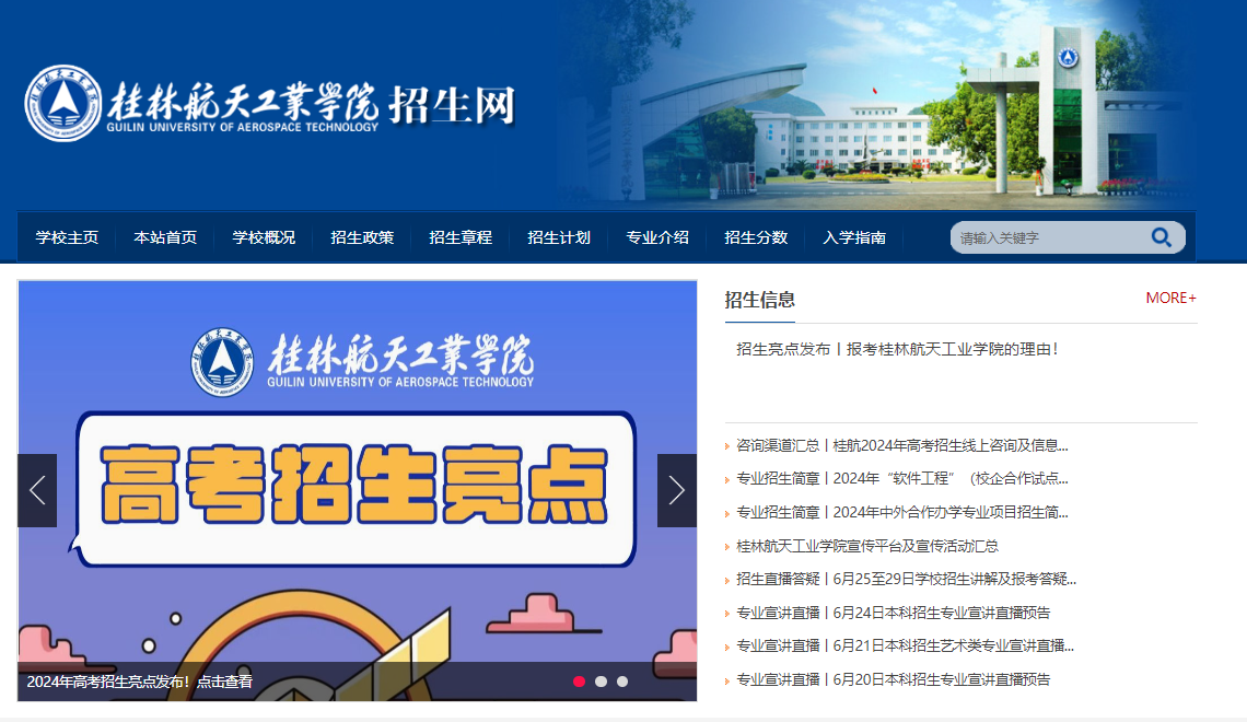 学校招生网首页(https://zsw.guat.edu.cn/)