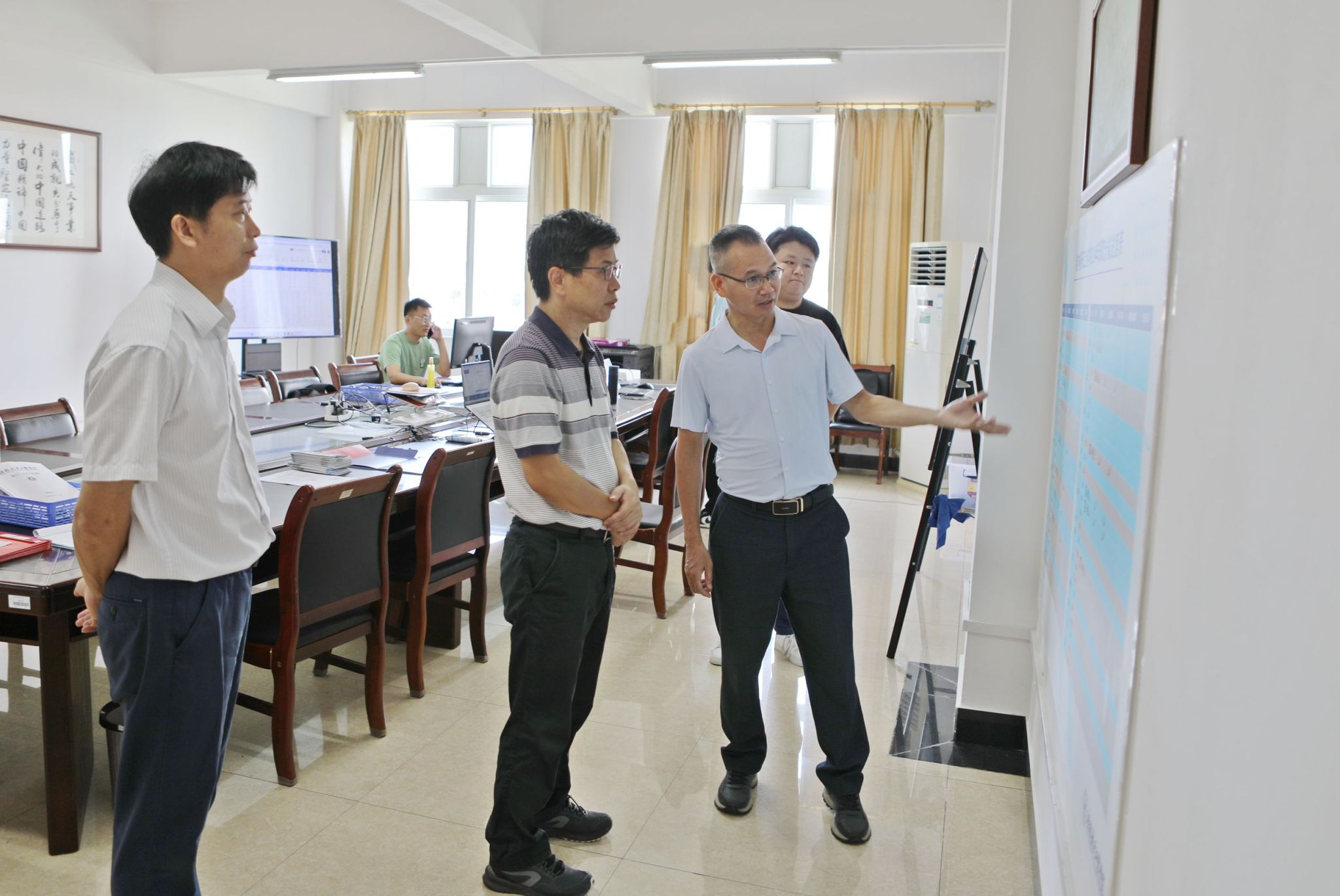 招生办负责人向韩峻峰介绍了2024年学校高考招生录取工作基本情况。韩峻峰询问了今年广西高考综合改革后招生录取工作的准备情况及遇到的困难,对招生录取工作人员表达了热切关怀。
