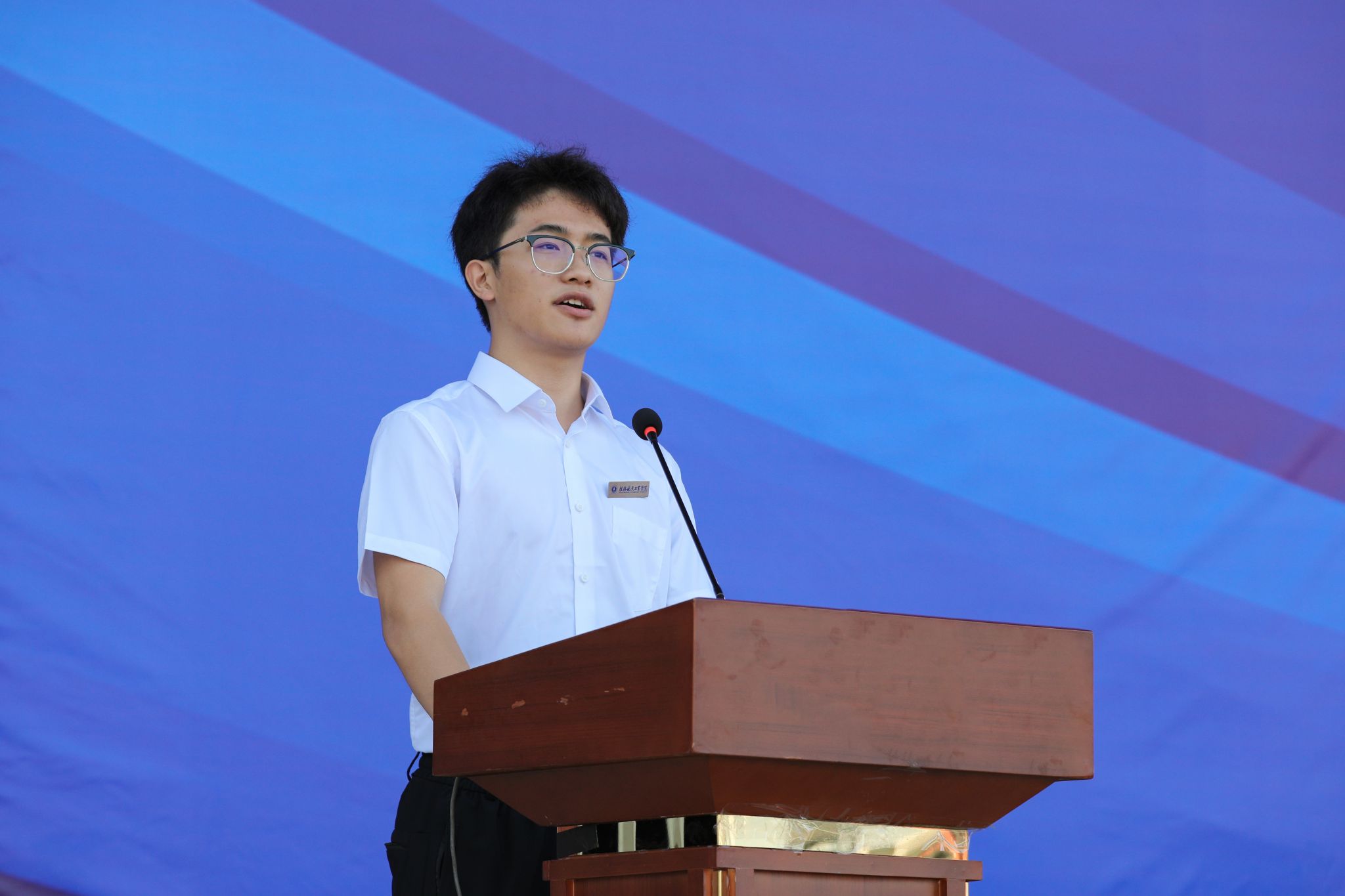 新生代表——能源与建筑环境学院能源与动力工程专业的李维轩同学,怀着对大学生活的期待,表示自己大学期间将坚持笃行致远,取长补短,厚积薄发,勤学苦练,为实求新。在桂航精神的引领下,践行以母校为荣,力争为母校增荣,努力奔向灿烂的明天。