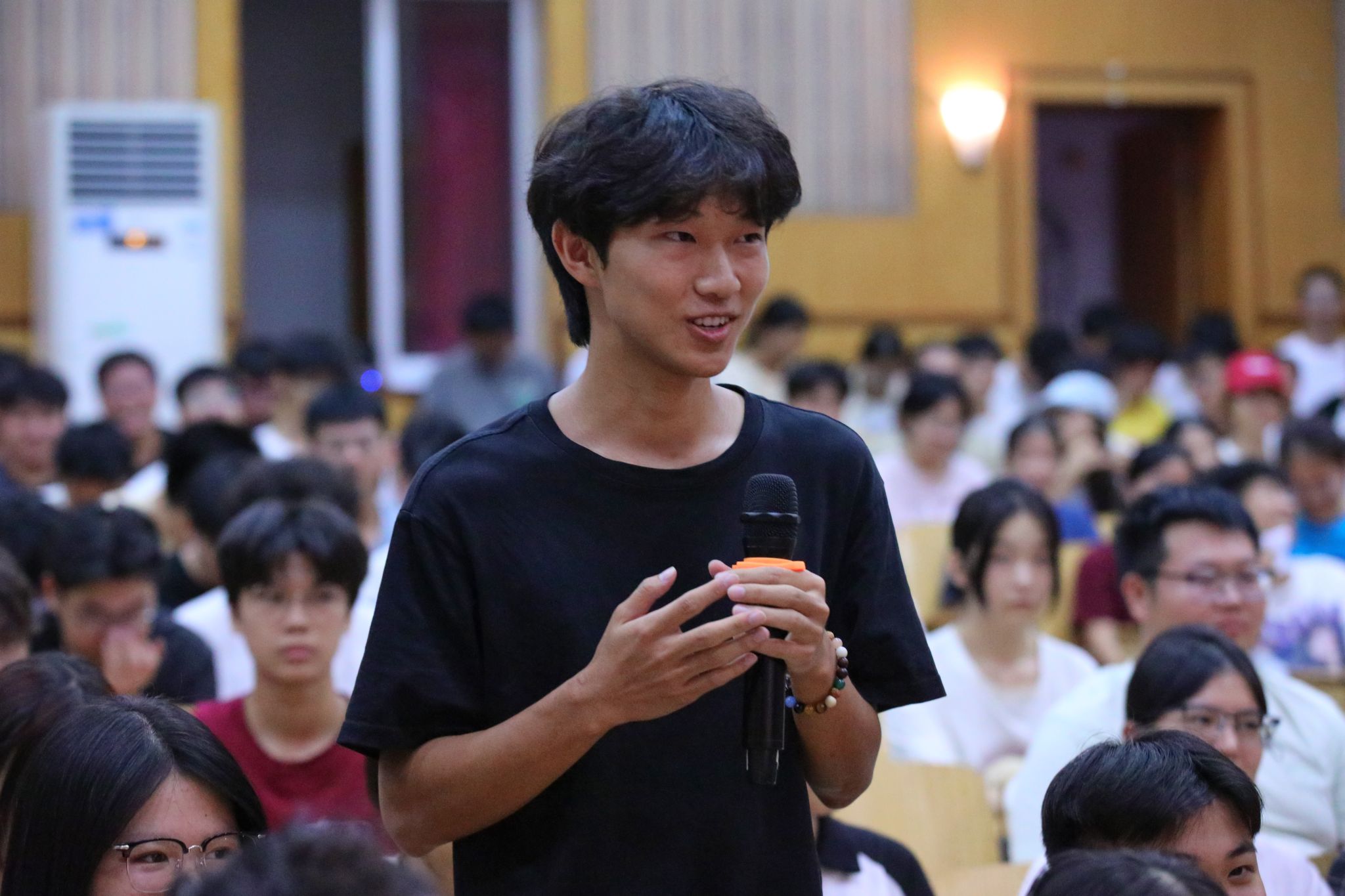 讲座持续近2个小时,在提问环节,新生们青春洋溢、积极主动,结合中国共产党人初心使命、自身所学专业及入学后的生活体验等方面向韩峻峰提问。韩峻峰逐一为同学们答疑解惑。