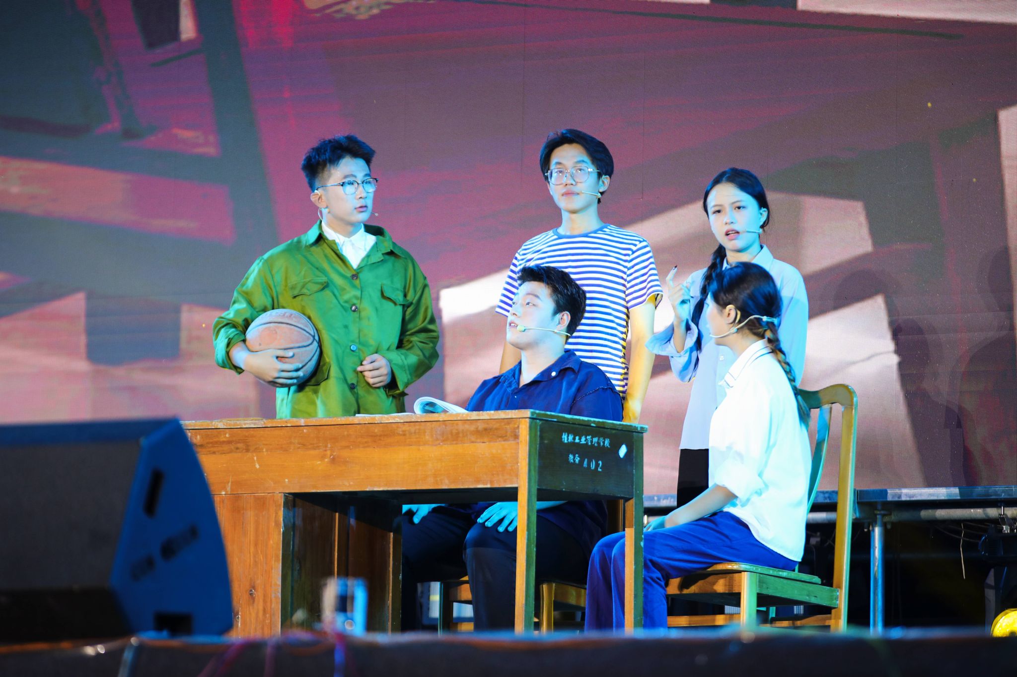 第二篇章“怀憧憬,唤青春启航”。《青春的模样》用桂航青年的独特视角讲述着奋发有为的青春画面,在节目结束之前,探天飞行表演队的航模纸飞机在热烈的欢呼声和掌声中启航,在夜空中熠熠生辉,梦想与希望在这一刻被点亮,展现了桂航青年敢拼敢闯的青春朝气,让同学们更深刻地认识到新时代青年的责任,引领新生努力绘制属于自己的大学生活蓝图。原创舞台剧《无限芯》讲述了桂航杰出校友故事,带我们共同走进一段跨越时代的追梦之旅。学校45年发展历程中,坚持以立德树人为根本任务,以“航天精神铸魂,航天文化育人”为培养教育理念,奋力书写为党和国家培养德智体美劳全面发展的社会主义建设者和接班人的荣耀答卷。航天梦,强国梦,诠释了桂航人的初心,也饱含了桂航人的梦想。在节目的激励下,在场观众全体起立共唱校歌《蓝天是我们永远的向往》,铭记桂航校训和桂航精神。