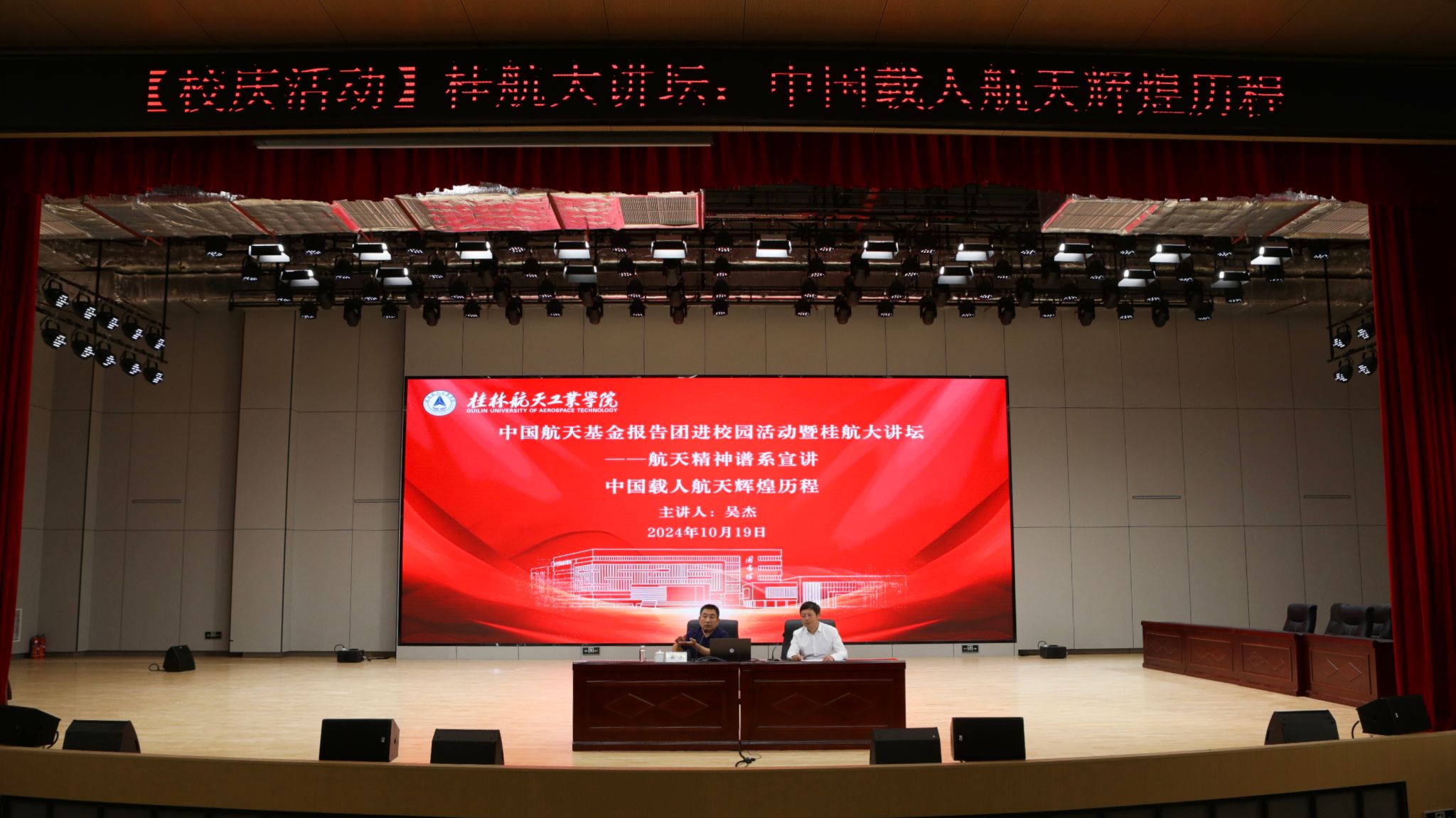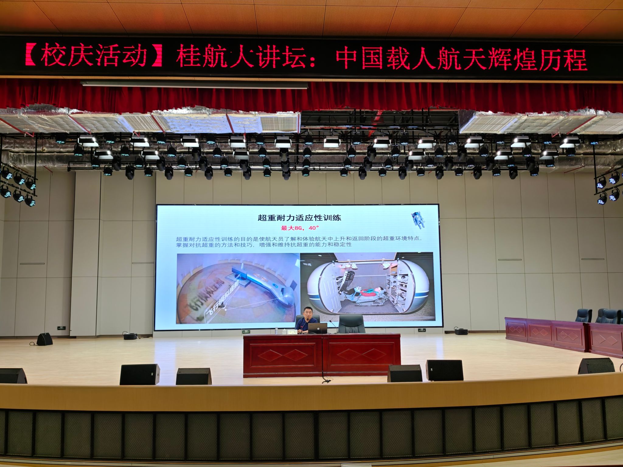 为进一步深化红色航天文化“大思政课”育人实践,适逢Beat365校庆45周年之际,10月19日,航空航天专家、原国家首批航天员兼航天员教练吴杰大校走进“桂航大讲坛·校庆活动专场”,在问天楼学术报告厅进行“航天精神进校园——中国载人航天辉煌历程”的主题宣讲。副校长张立国主持宣讲会,广西首个“钱学森班”等800名师生同上一堂航天思政课。
