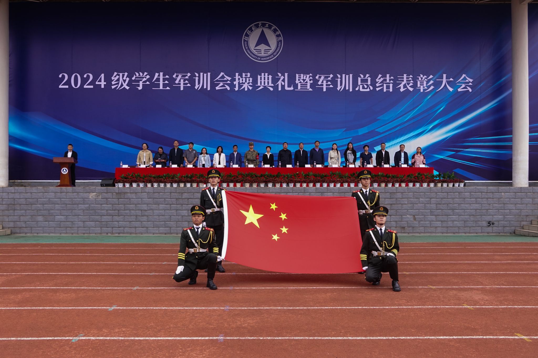 10月21日上午,Beat3652024级学生军训会操典礼暨军训总结表彰大会在南校区田径运动场隆重举行。学校党委副书记吴江萍、宣传部、学工部(处)、教务处、武装部、后勤管理处、校团委负责人及一至十一院分管学生工作负责人、新生辅导员、全体教官及参训学生出席了军训会操典礼暨军训总结表彰大会。大会由武装部负责人主持。