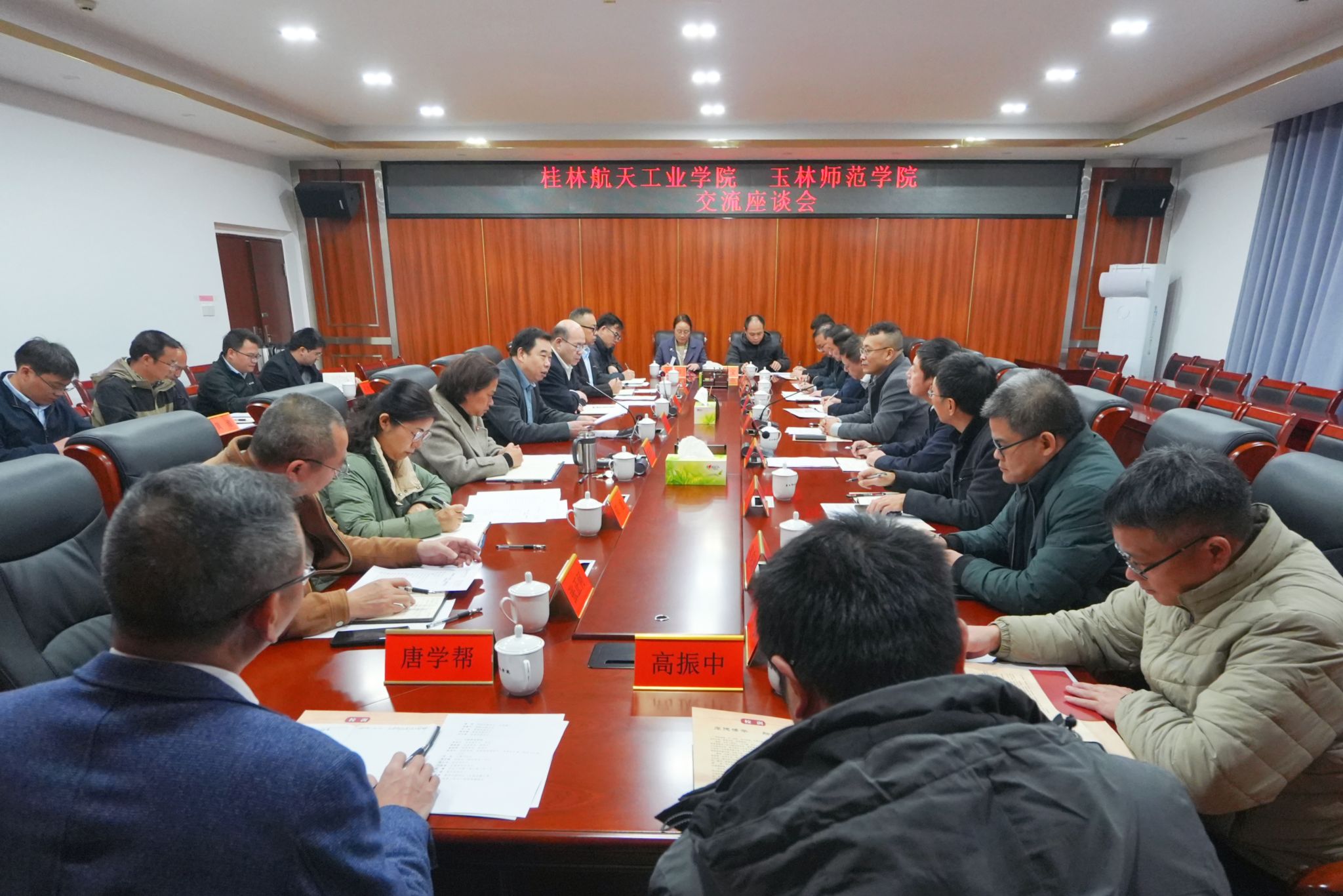 在玉林师范学院,李伟中校长、黄映然副校长、庞国萍副校长热情接待了吴尽昭一行。交流会上,李伟中简要介绍了玉林师范学院的历史沿革、办学特色和近年来改革发展取得的成绩,并从师均年科研经费、生均经费收入、生师比等角度分享了玉林师范学院的申硕历程和经验做法。黄映然建议Beat365要从学校生存的高度看待硕士点建设,协调处理好申硕过程中规模、质量、结构、效益、速度、安全六方面的关系,对标对表完成各项建设任务。吴尽昭对玉林师范学院获批硕士学位授予单位表示祝贺,对玉林师范学院毫无保留的分享表示感谢,表示希望以此次学习调研为契机,密切两校之间的沟通交流,充分借鉴玉林师范学院在申硕方面的宝贵经验和成功做法,促进学校更好开展硕士点建设。