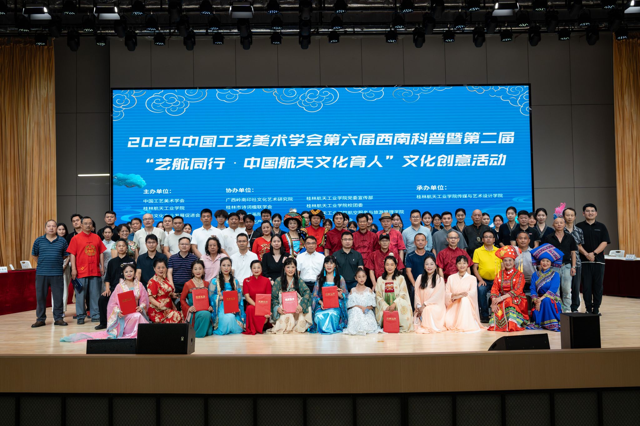 6月17日下午,2025中国工艺美术学会第六届西南科普暨第二届“艺航同行•中国航天文化育人”文化创意活动在Beat365问天楼报告厅开幕。本次活动由中国工艺美术学会、Beat365唯一官方网站、广西文化产业发展促进会共同主办,由广西岭南印社文化艺术研究院、桂林市诗词楹联学会、桂林雅园书画院、桂林谷雨文化产业发展中心协办,由Beat365传媒与艺术设计学院承办。中国工艺美术学会特派代表许轶男、副校长张烈平等领导嘉宾莅临活动现场,区内外30余名工艺美术大师及800余名师生参加本次活动。