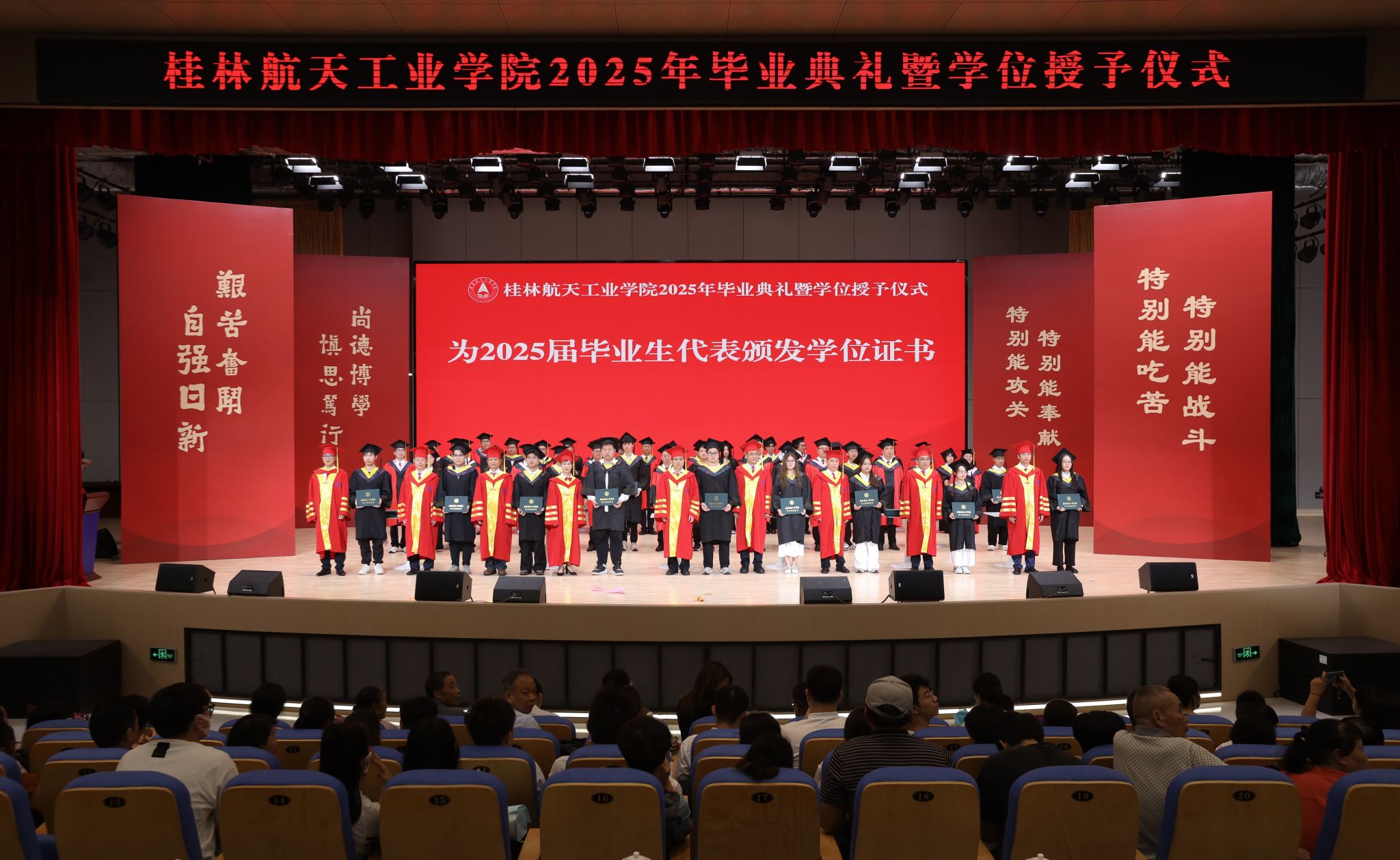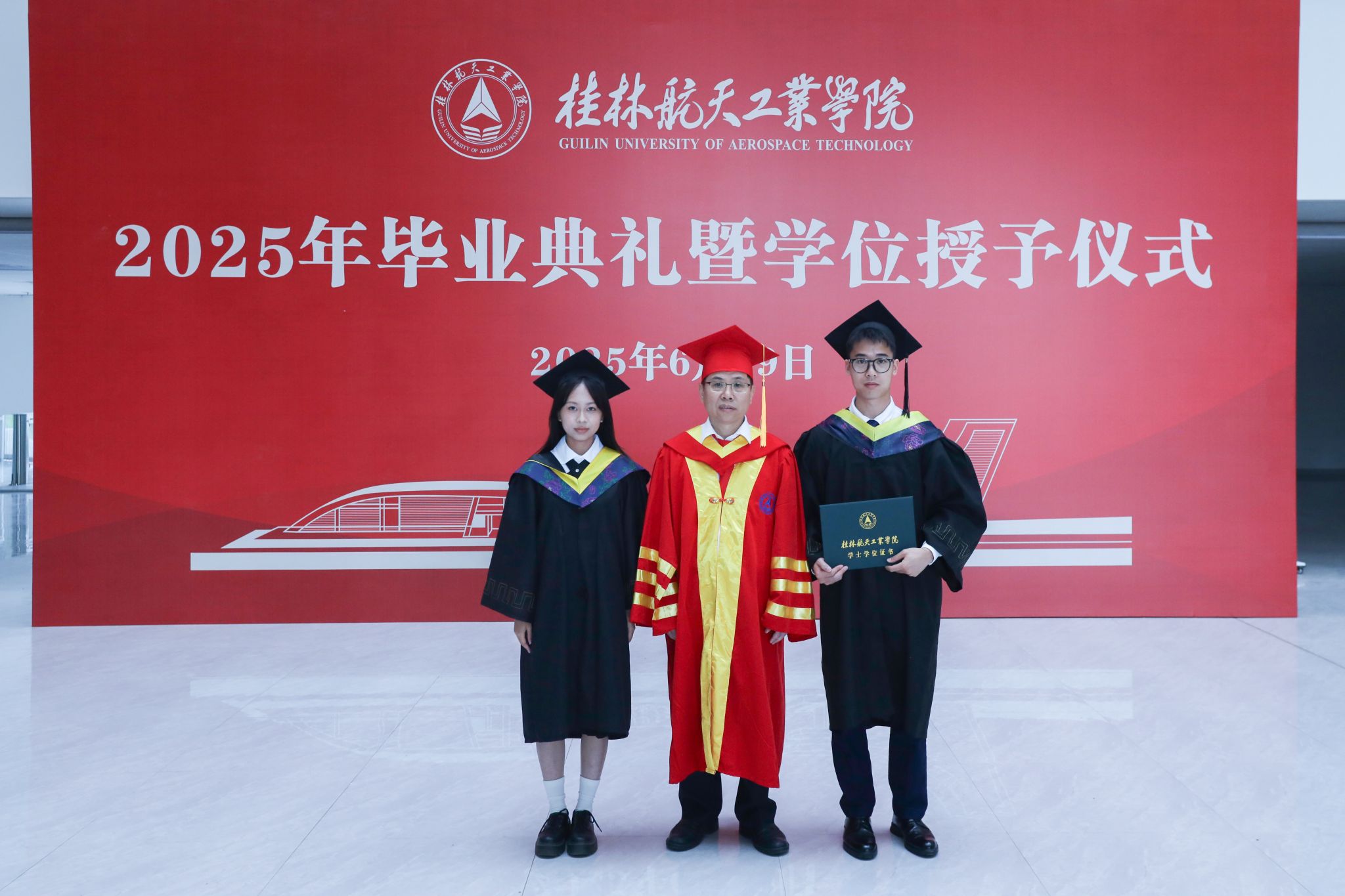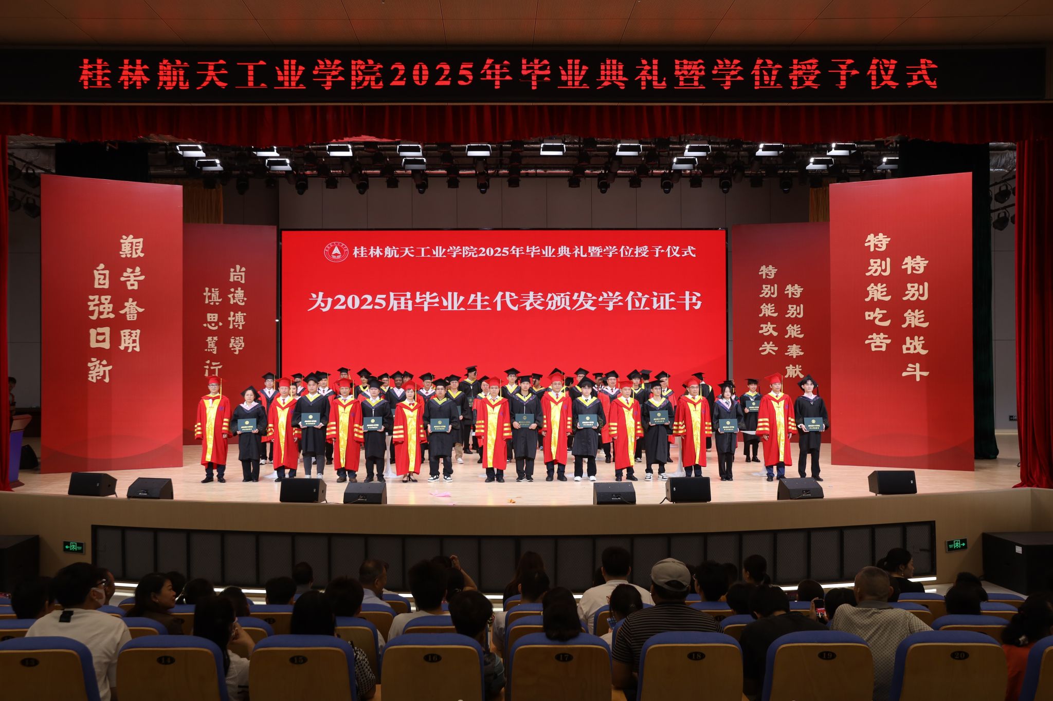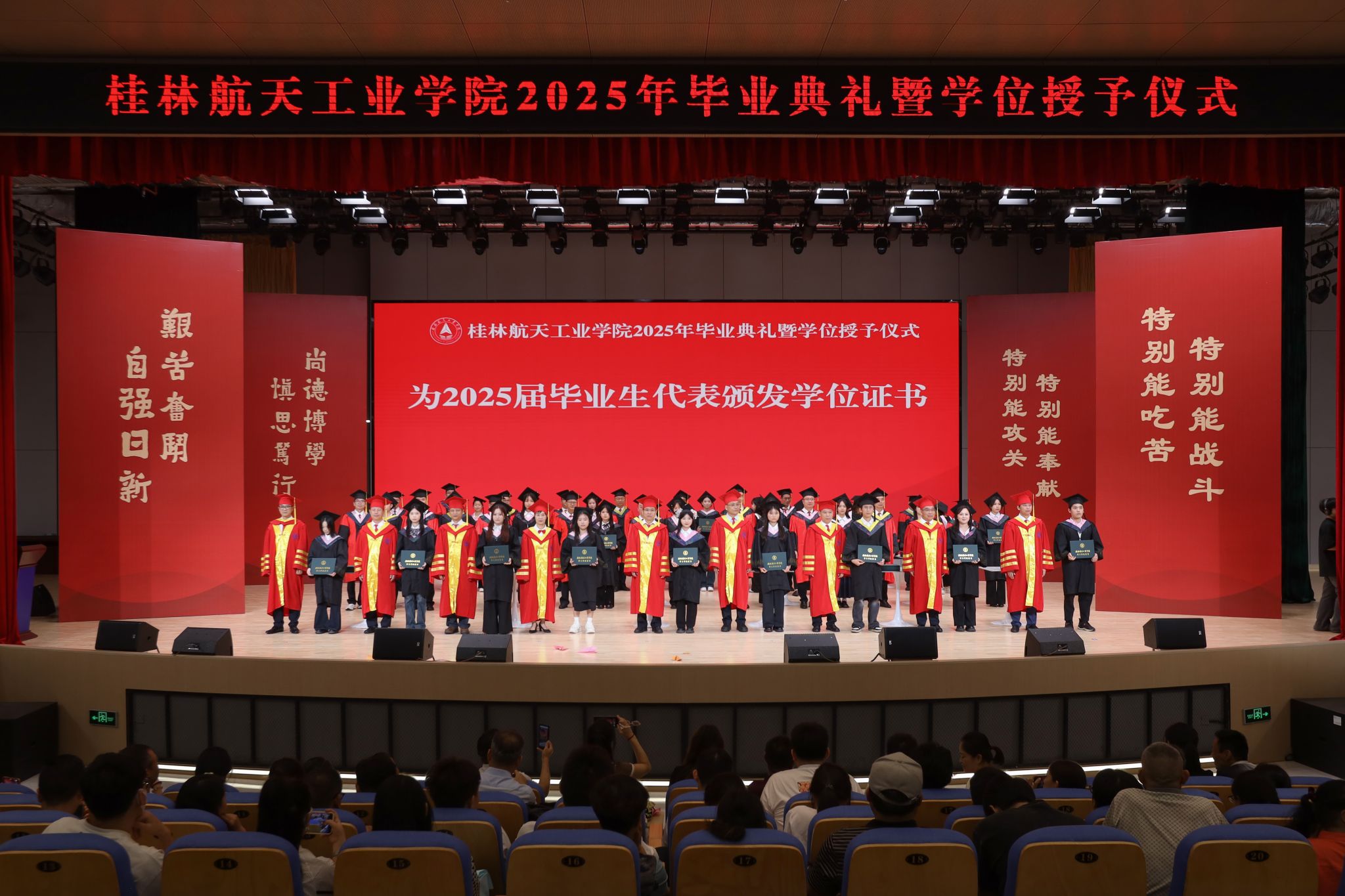 典礼上,精彩的情景剧《在盛夏告别》和朗诵《航天精神·桂航星辰》,展现了桂航学子的青春风采和航天精神。在感恩环节中,毕业生代表向专任教师、辅导员、教学秘书、实验室管理员、宿舍管理员、安全保卫员等校园各岗位工作人员献花,感谢他们多年来的默默坚守与无私奉献。四位教师带来歌曲《故事的最终》,以歌声表达不舍与祝福。