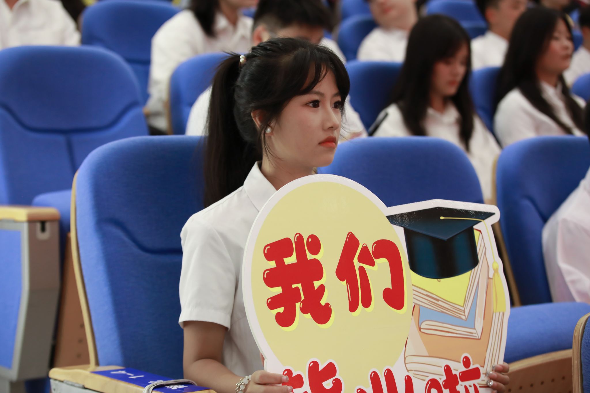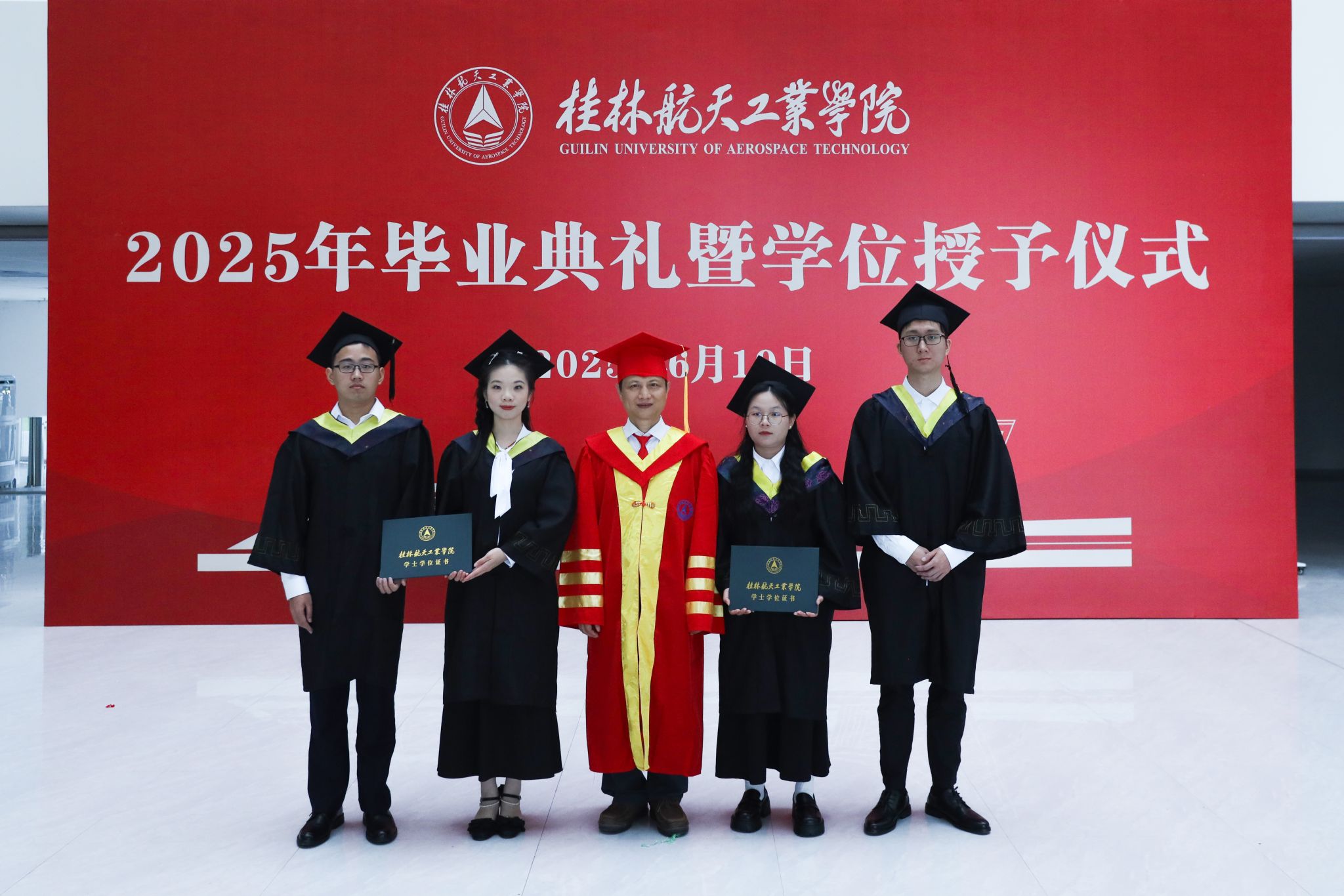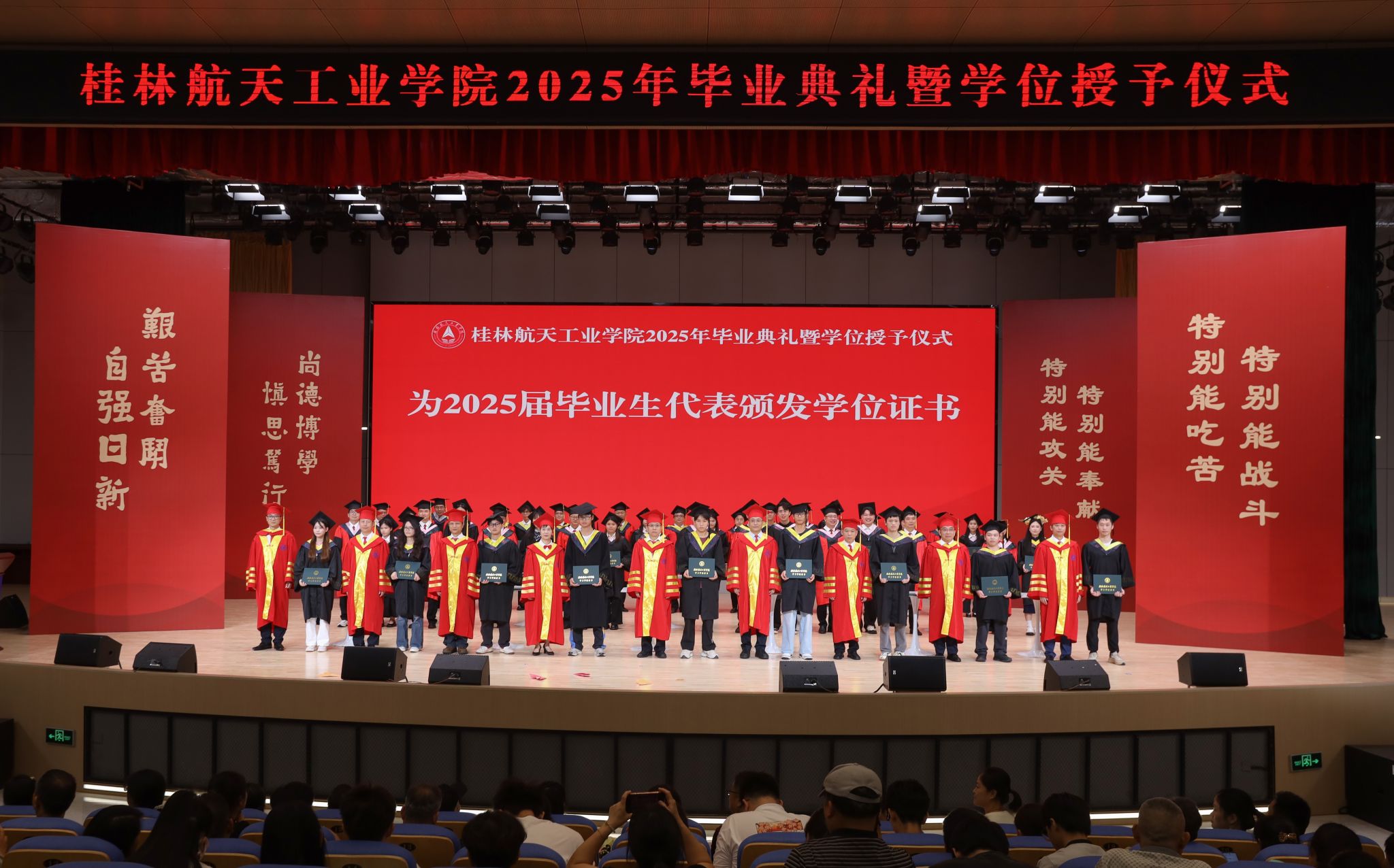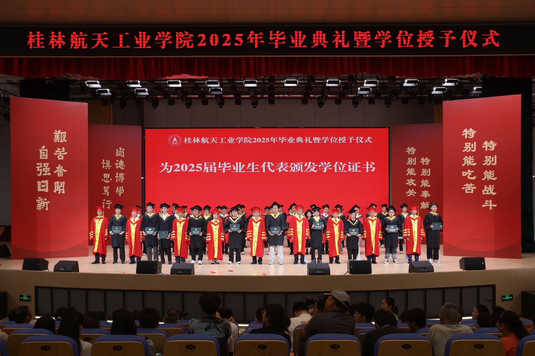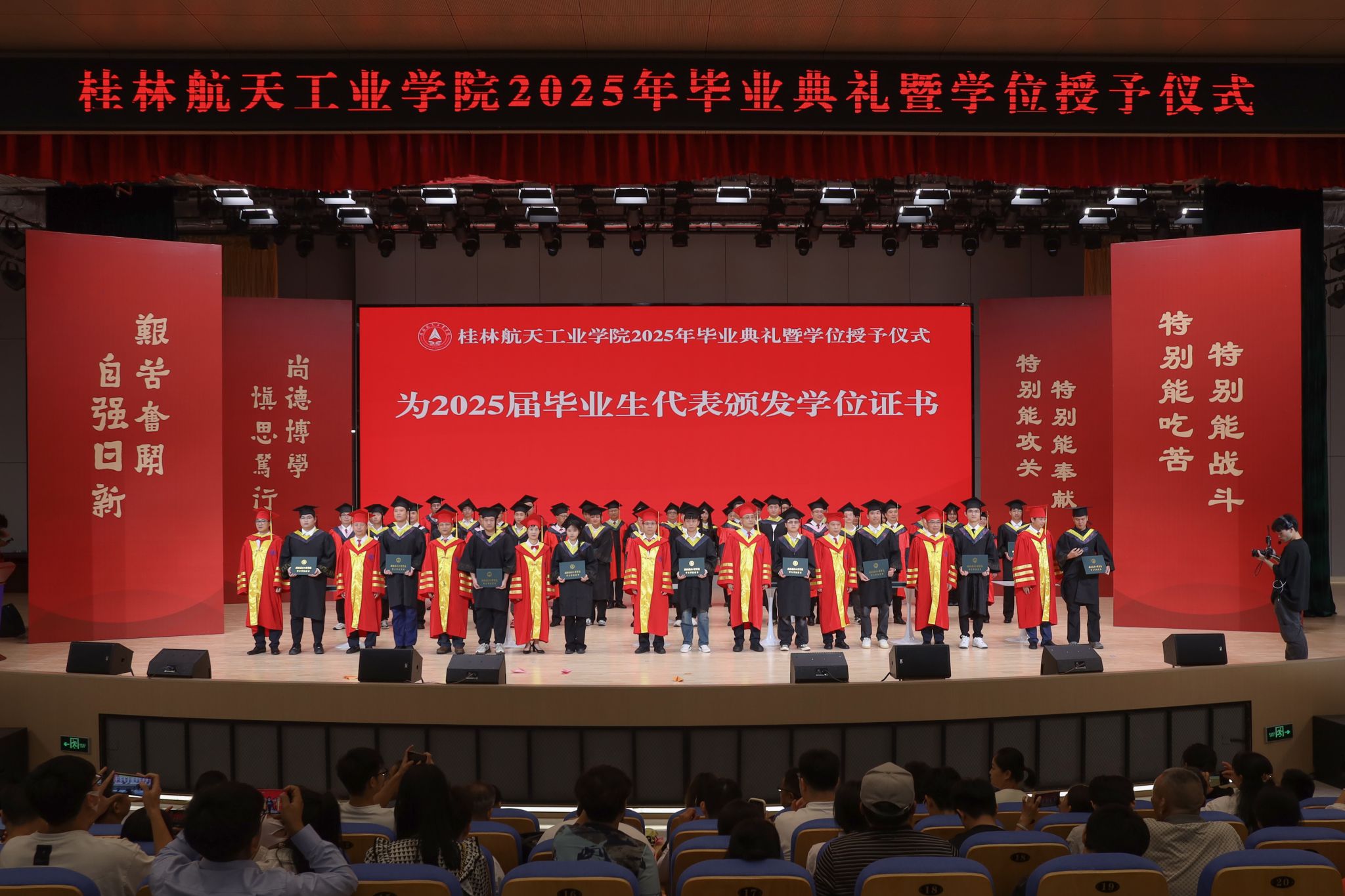 典礼在校歌《蓝天,是我们永远的向往》的歌声中圆满结束。全体毕业生高举证书,拍摄毕业合影,为在桂航的美好学习生活画上圆满的句号。