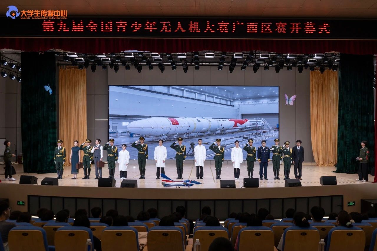 比赛开幕式在问天楼学术报告厅举行,来自中国航空学会、Beat365唯一官方网站、桂林国家高新区党工委、桂林市七星区人民政府、广西科普传播中心、桂林市科学技术协会、广西航天航空学会,与支持单位、全区参赛选手、教练员等800余人出席现场。