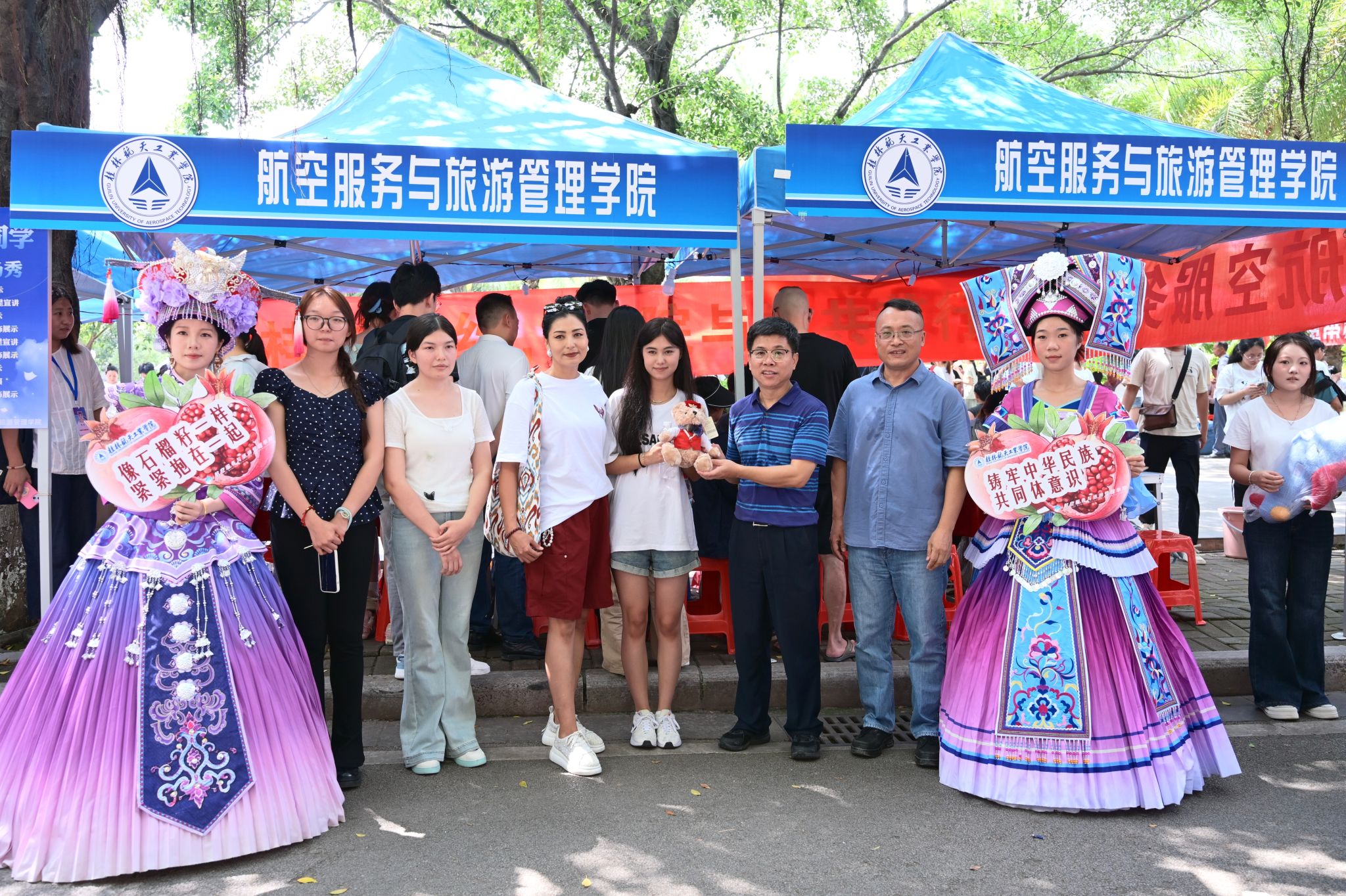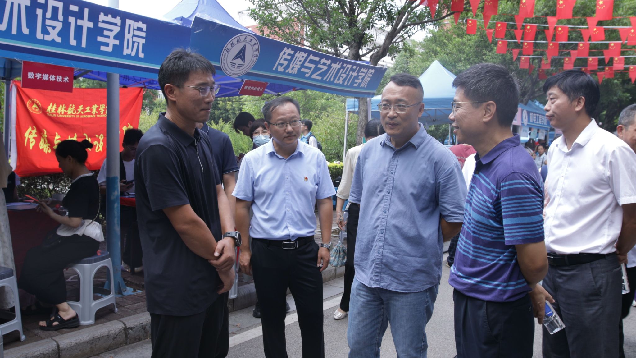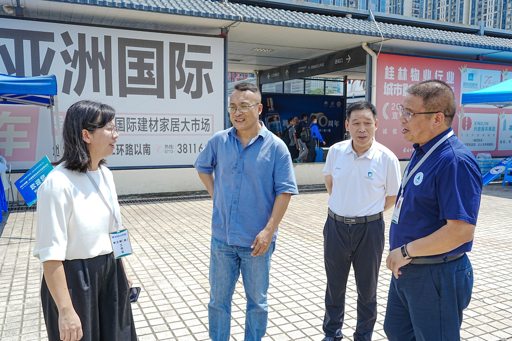 在火车迎新各站点,校领导对坚守岗位的志愿者表示感谢,对迎新志愿者能够尽心尽力做好迎新服务、展示出桂航学子良好的精神面貌表示了肯定,并叮嘱他们在工作中要注意天气炎热,注意防暑。