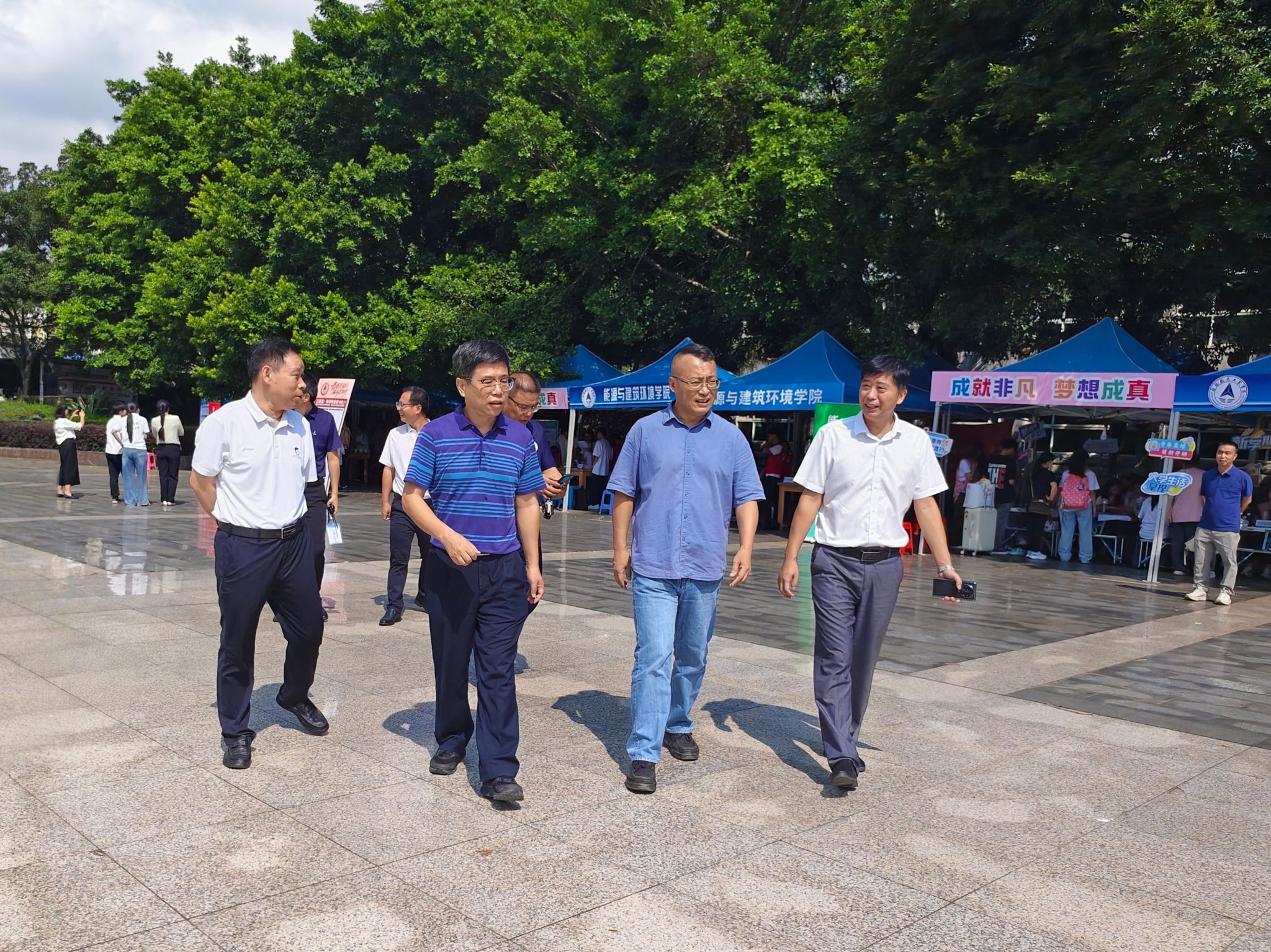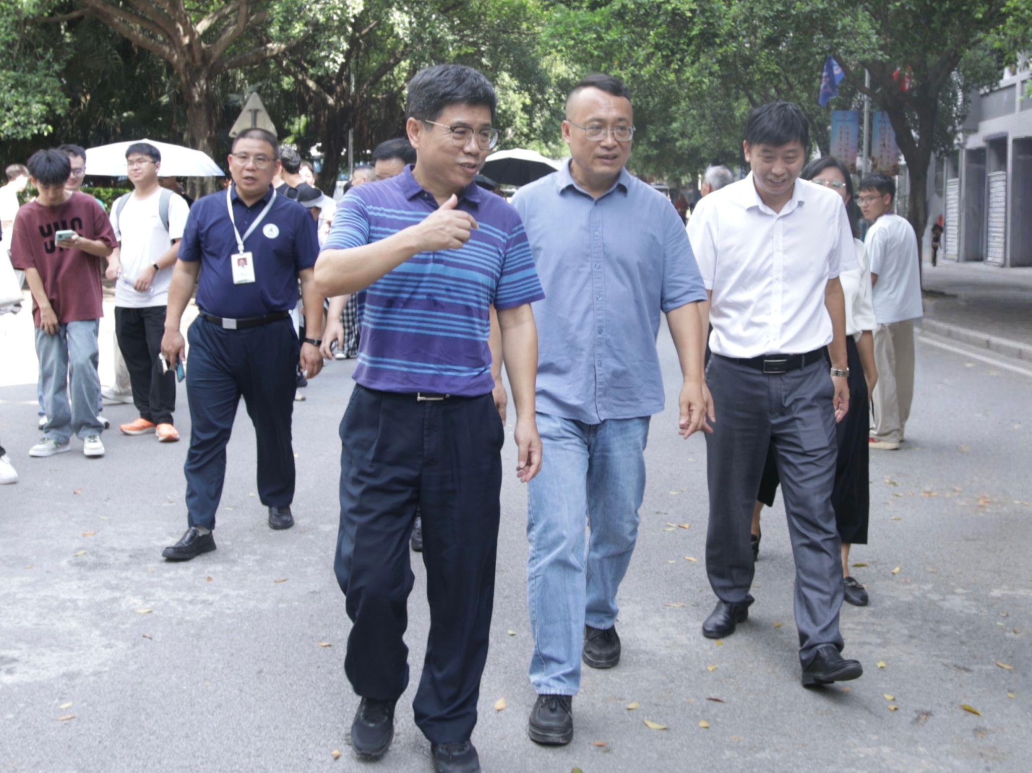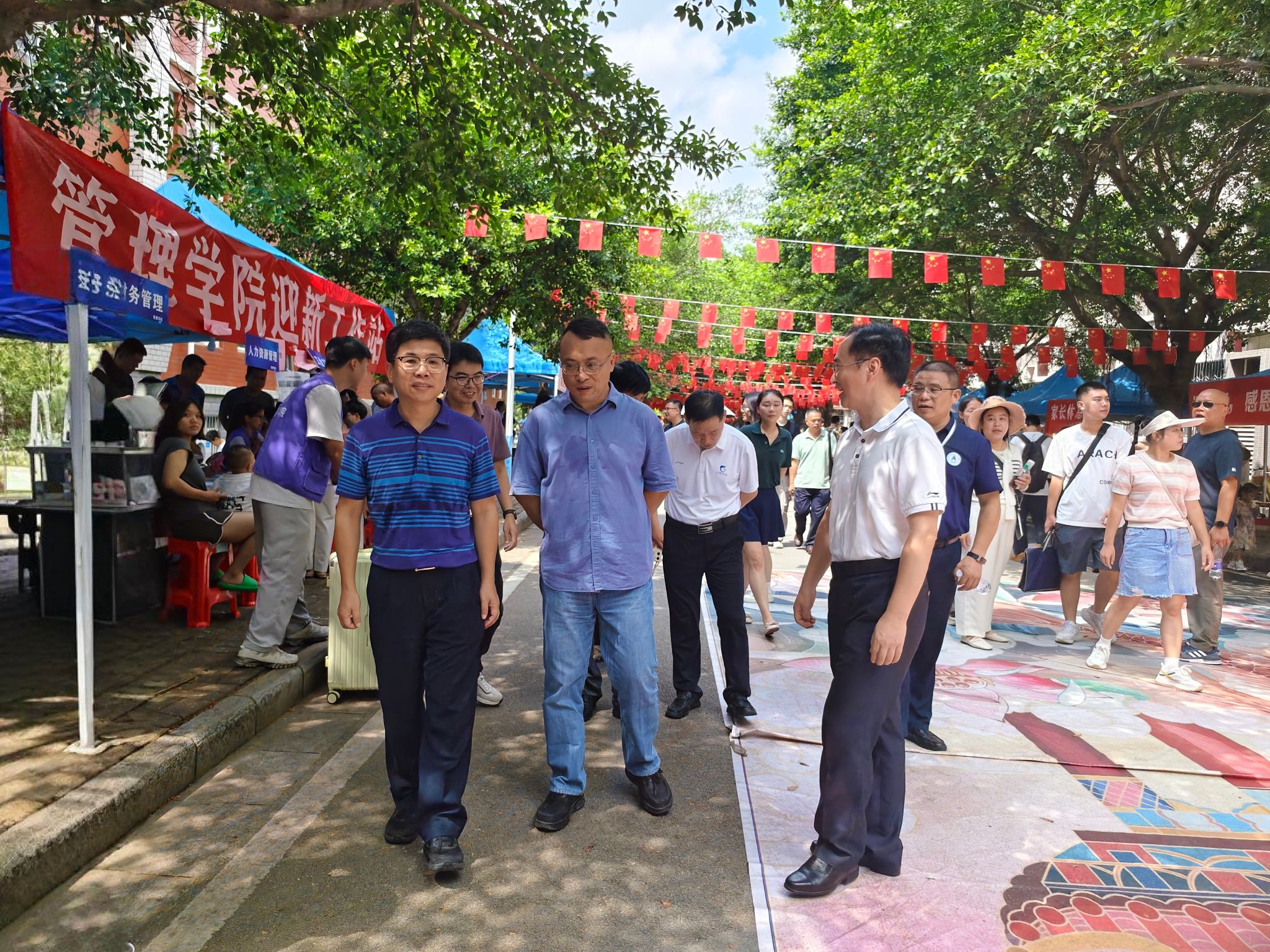 校领导一行先后走访了南北校区迎新大本营、一站式学生社区迎新服务点、火车站新生接待点等地,实地了解迎新工作进展情况。