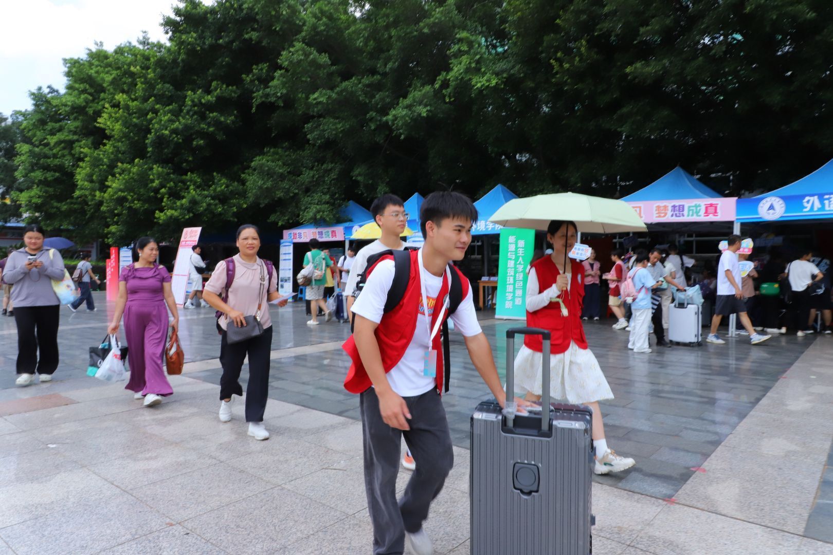 在南北校区迎新大本营,校领导听取了相关部门和学院负责人关于迎新工作的汇报,与远道而来的新生进行亲切交谈,并对新生家长的支持表示衷心感谢,请家长们放心将孩子交给学校,携手开展家校共育。