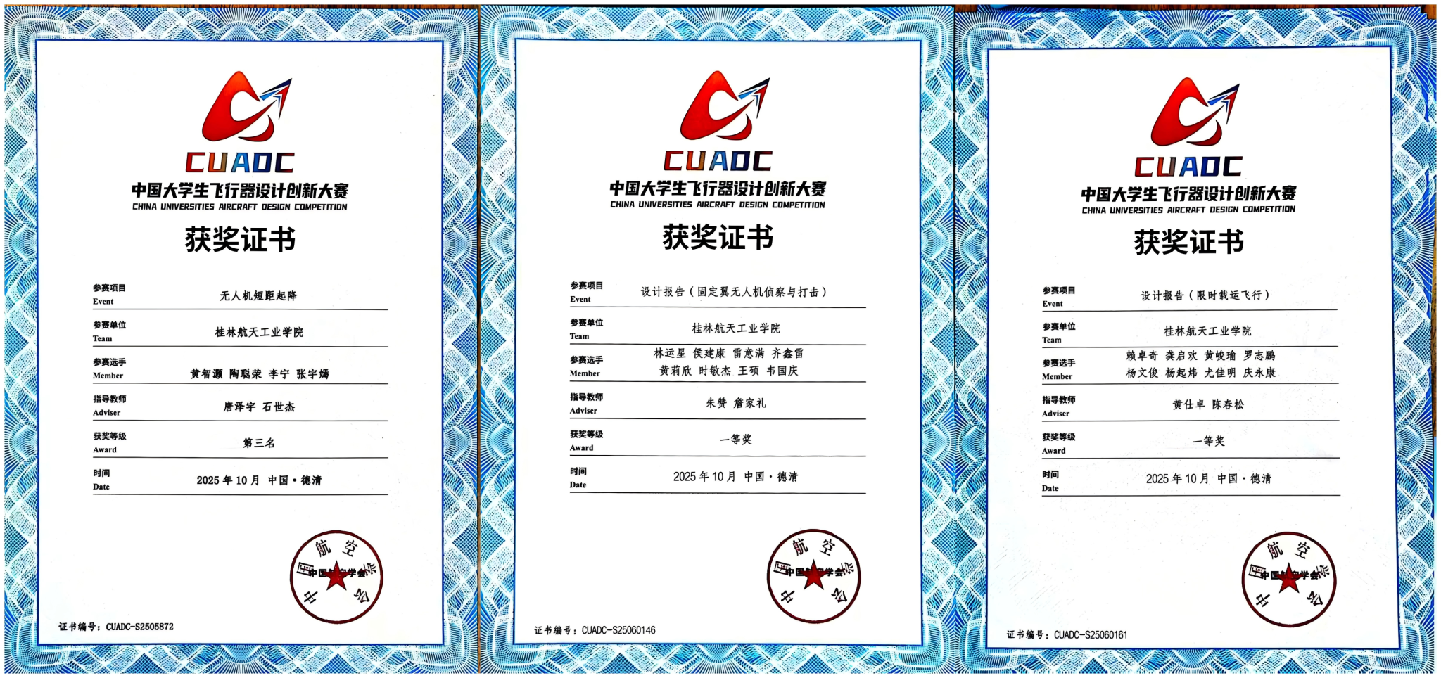 近日,2025中国大学生飞行器设计创新大赛全国总决赛在浙江德清落幕。学校选派由航空宇航学院组织的数支参赛队,参加了飞行器限时载运飞行、无人机短距起降、固定翼无人机侦察与打击、航天火箭发射与返回、技术设计报告等总决赛的7个项目,以优异成绩获得了全国一等奖8项(其中全国冠军1个、全国季军3个)、全国二等奖6项、全国三等奖2项。