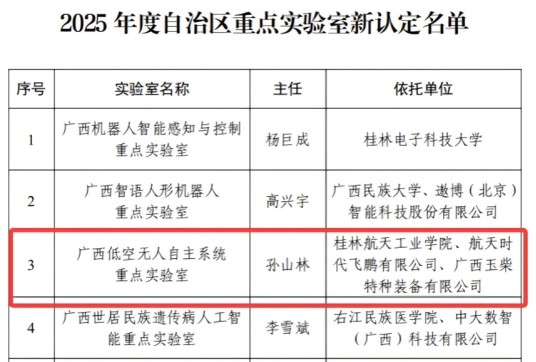 ●▶▶▶广西低空无人自主系统重点实验室获批成立