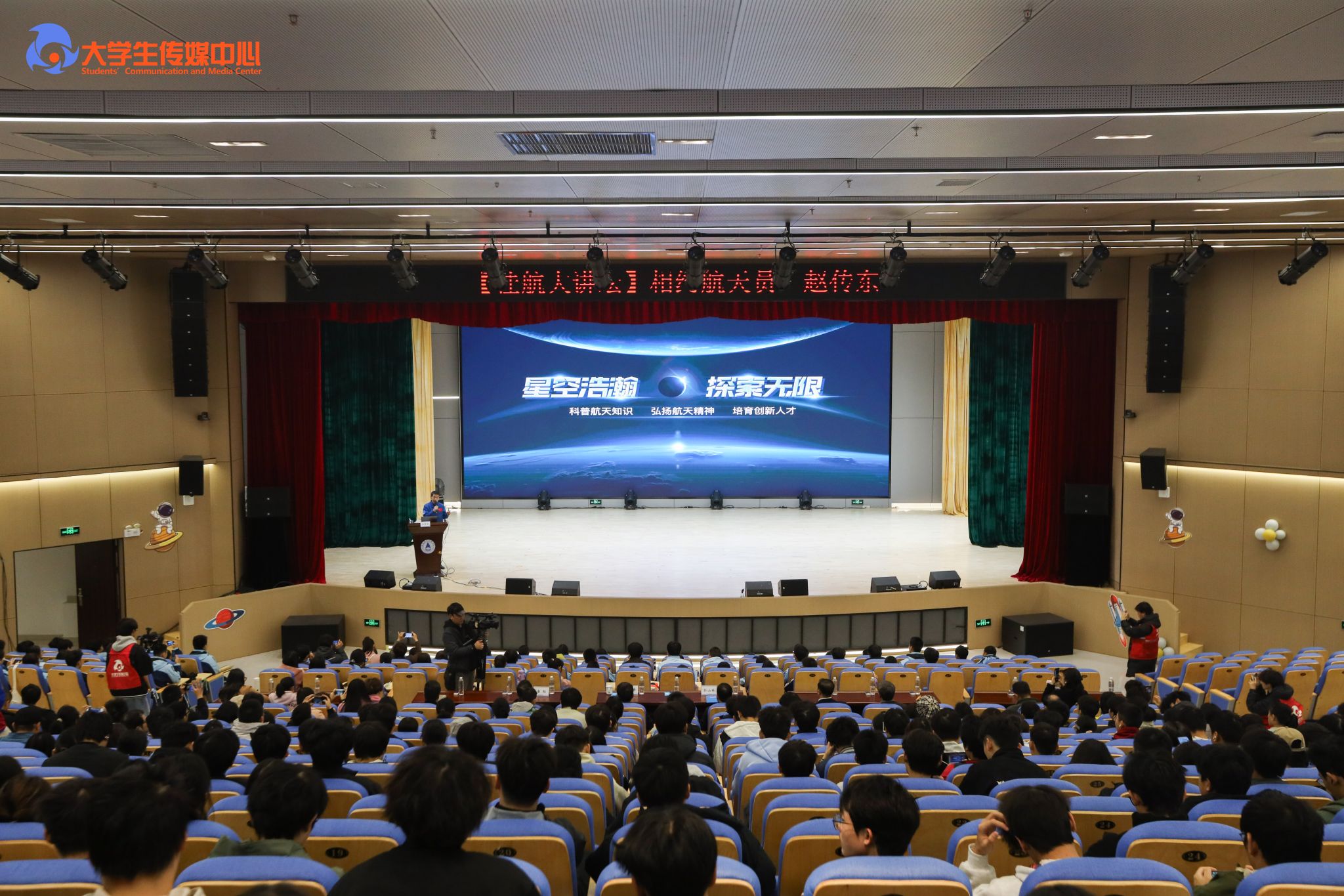同时,赵传东航天员围绕“新时代创新人才应具备的家国情怀、国防意识、科学素质与综合素养”这一核心话题,结合中国首批航天员训练经历,深刻阐释了航天事业发展背后蕴含的“特别能吃苦、特别能战斗、特别能攻关、特别能奉献”的载人航天精神,为师生们带来了关于理想追求与责任担当的深刻启示。