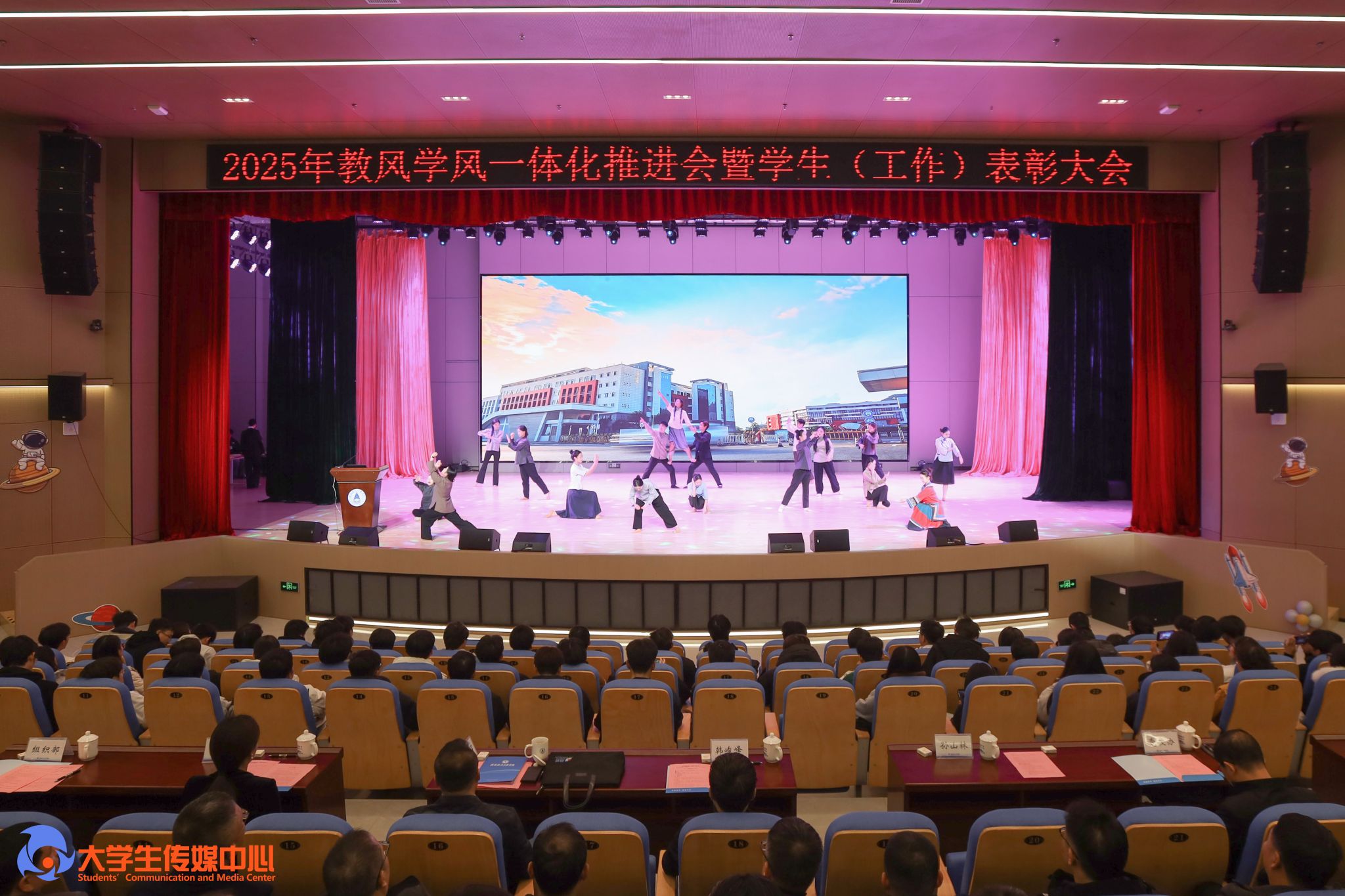 会上,在场师生共同观看了“星辰耀桂航领航起新章”2025年学生(工作)总结视频,大学生艺术团、钱学森班成员围绕大会主旨进行了歌舞、朗诵表演。国家奖学金获奖代表龚瑞雅同学、校长奖学金代表微小型飞行器实验室团队张宇嫣同学分别从个人发展、团队建设、科技创新等方面进行了交流发言;学工部(处)、教务处、人工智能学院和外语外贸学院主要负责人就教风学风一体化推进工作作了工作安排及经验交流。