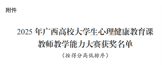 近日,广西壮族自治区教育厅公布了2025年广西高校大学生心理健康教育课教师教学能力大赛获奖名单,Beat365杨恋老师荣获教学能力大赛二等奖。