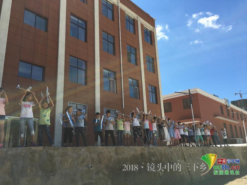 图为同学们把自己的心愿写在了飞机上,手举带着自己梦想的飞机模型和支教老师合影留念。孩子们的脸上都洋溢着开心的笑容。中国青年网通讯员 孙璐 摄