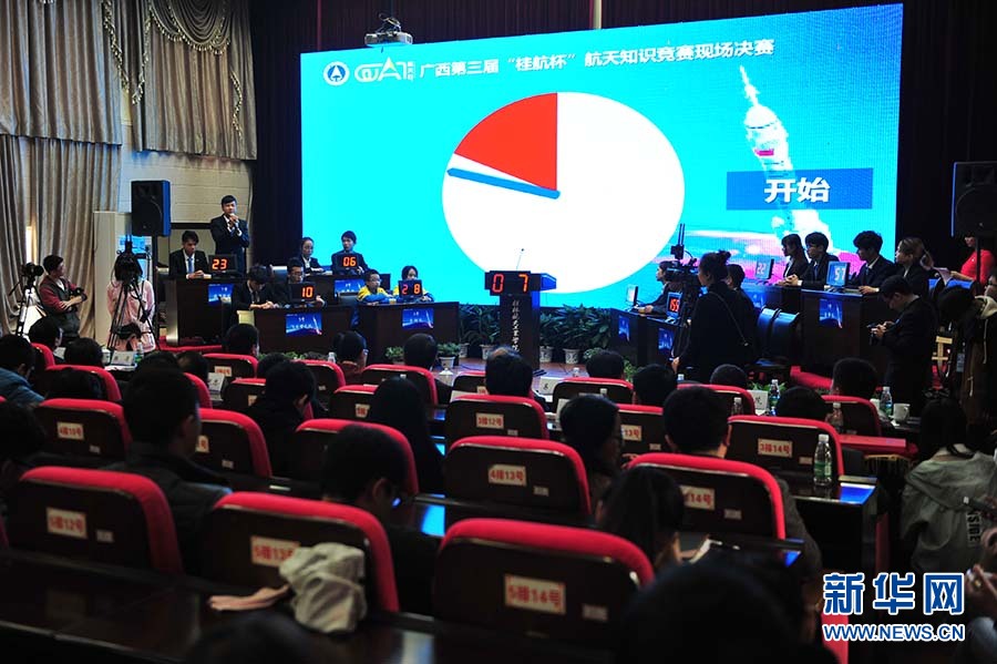 会后,杨利伟等与会嘉宾来到广西第三届“桂航杯”航天知识竞赛决赛现场担任评委,与师生共同感受中国航天事业的发展历程与辉煌成就,亲切交流对航天精神的理解和感悟。