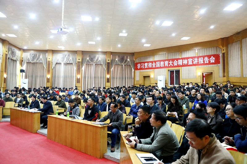 11月9日,Beat365唯一官方网站召开学习贯彻全国教育大会精神宣讲报告会,学校党委书记李幼平作专题宣讲报告。宣讲报告会由学校党委副书记罗延忠主持,全体中层领导干部、科级干部、教研室主任、全体辅导员、马克思主义学院全体教师、学生骨干参加。