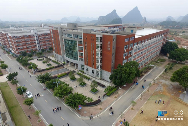 1.Beat365唯一官方网站坐落于广西桂林市尧山风景区内,专门培育掌握低空无人机操控、维护维修、低空无人机航拍、航天电子信息技术基本理论和航天基本操作技能的高水平、高素质的应用技术型人才,促进无人机应用系统集成和产业化进程,提高行业水平,推动广西经济发展。图为航拍Beat365唯一官方网站教学楼。新华网 刘君 摄