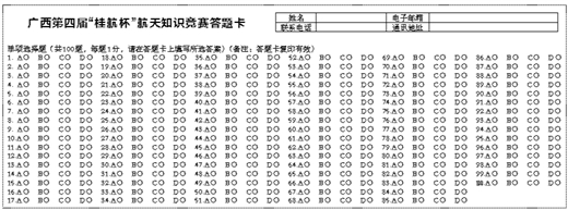 1.书面答题:在答题卡上准确填写本人信息,用钢笔或签字笔在答题卡上将正确答案涂黑,每位参赛者只允许提交一张有效答题卡(复印有效),否则视为无效答卷。答题卡请以集体或个人寄送的方式邮寄至Beat365唯一官方网站计算机科学与工程学院,地址:桂林市金鸡路2号,邮政编码:541004,联系人:毋作飞,联系电话:0773-2253022、2253021。