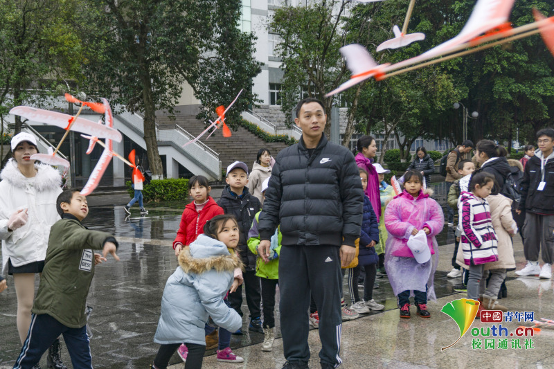 图为老师带领小朋友们试飞。中国青年网通讯员 李永康 摄