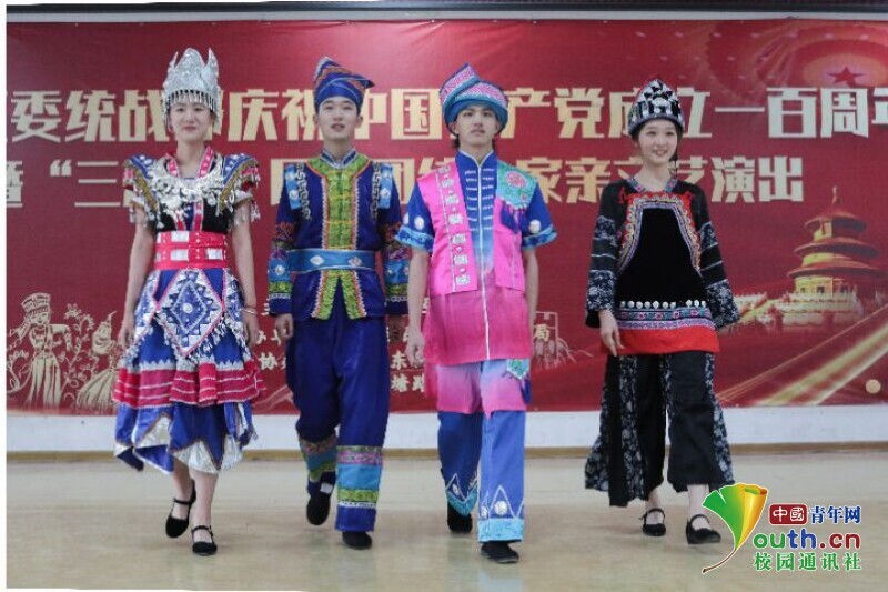 图为文艺汇演的民族服装展示 中国青年网通讯员 覃振华