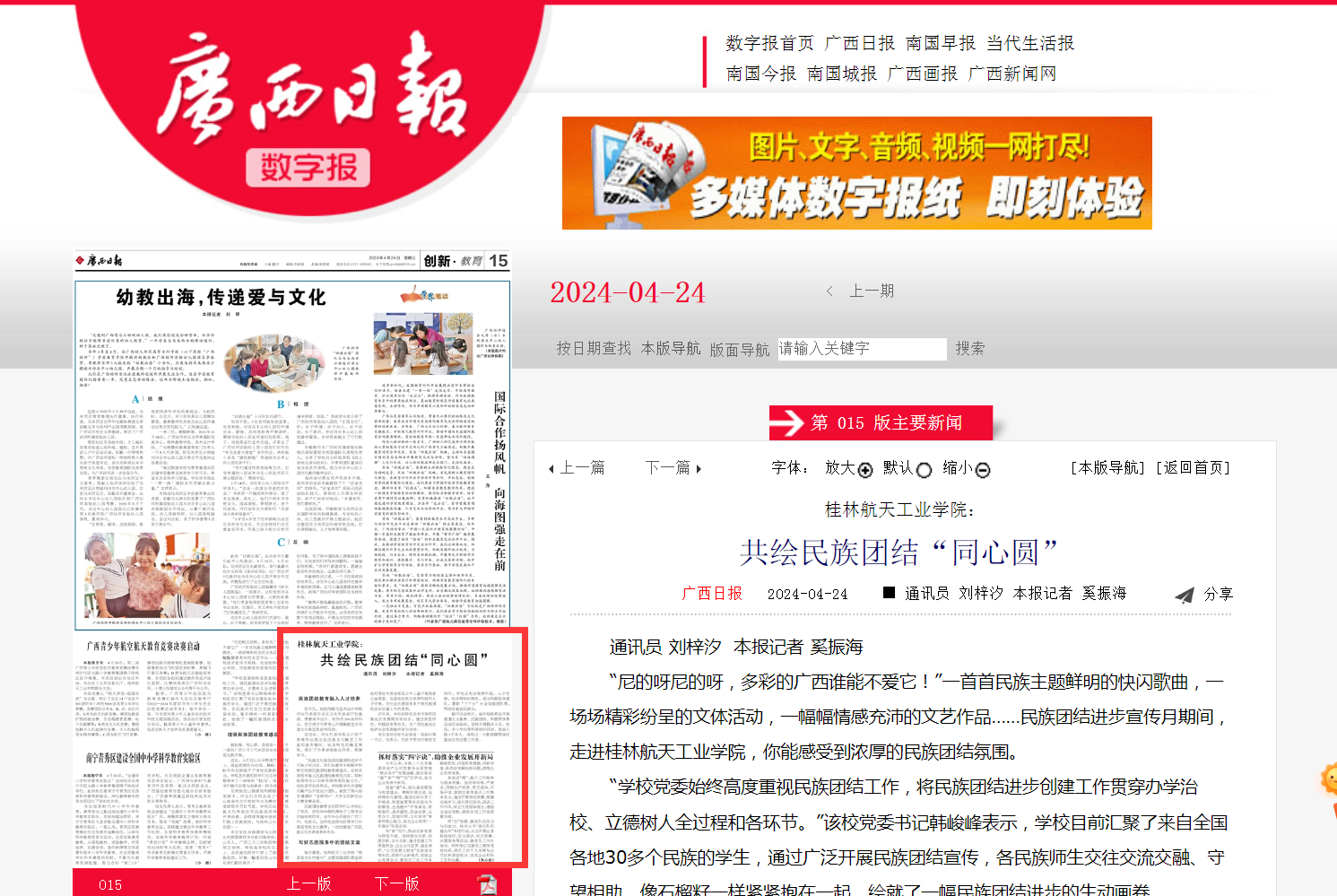 新闻链接: https://gxrb.gxrb.com.cn/?name=gxrb&date=2024-04-24&code=015&xuhao=6