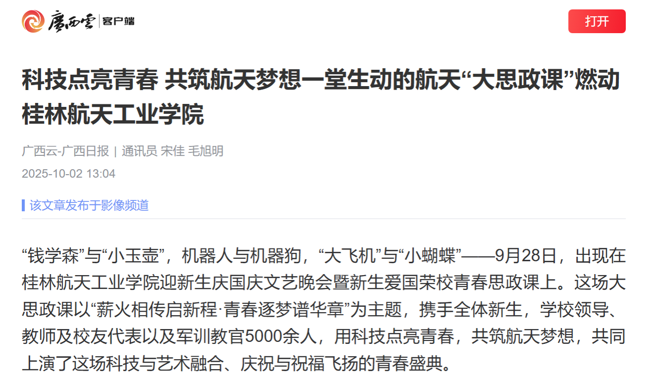 这场别开生面的“大思政课”在现场师生中引发热烈反响。理学院大数据专业2025级新生吴彤同学激动地表示:“这场晚会让我深刻感受到了科技与艺术融合的魅力,更让我对航天精神有了全新的理解。这堂特别的“思政课”,让我对未来的专业学习和校园生活充满了期待!”