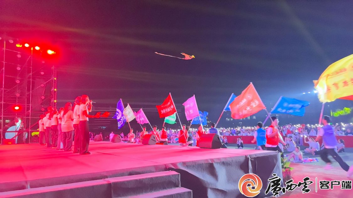 同心放歌,礼赞伟大时代。晚会在大合唱中迎来最高潮。当《蝴蝶泉边》的悠扬旋律响起,数架蝴蝶扑翼机在夜空中翩然起舞;而当《我爱你中国》的歌声响起时,全场师生纷纷点亮手机手电筒,万千光点汇聚成一片摇曳的星海。就在这动人时刻,一架凤凰航空模型腾空而起,与地上的“星海”遥相呼应,在夜空中划出绚丽的轨迹。全体师生用最真挚的歌声,向祖国献上最深情的告白。