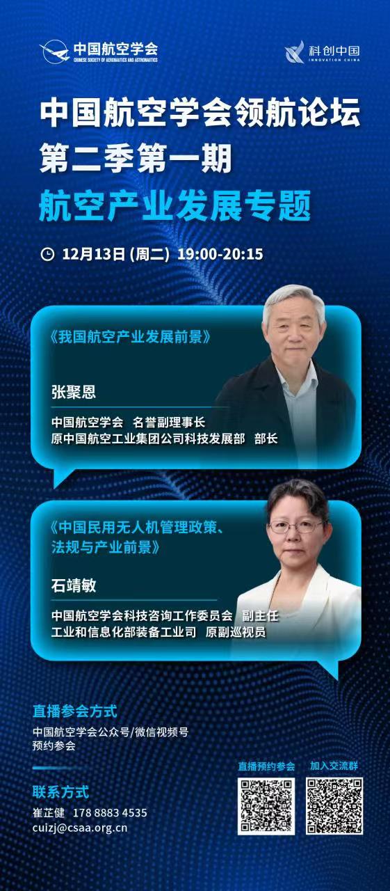 参会方式:中国航空学会公众号/微信视频号预约参会
