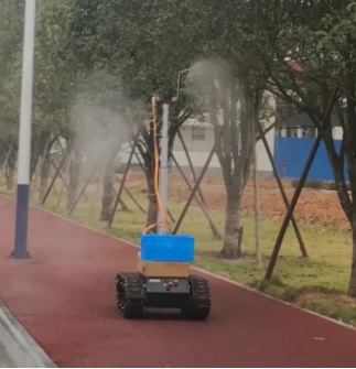 (3)研制了用于农业植保的履带无人车系统,可针对不同应用场景选配搭载不同工装模块,快速实现系统部署。该成果可用于农林植保作业,可实现农药喷洒、农作物状态监测等功能。