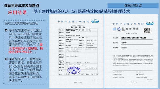 图10 “无人航空器区域组网厘米级遥感观测数据的实时快捷精准处理技术”主要成果及创新点