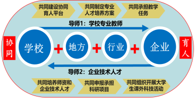 “内培外引”提高工程实践教师比例,实行专业教师+企业工程师“双导师”制,建立由“学校+地方+行业+企业”四方共同参与的“育人平台+人才培养+教学任务+师资队伍+课题申报+科技活动”六共同协同育人机制,校企深度合作(图5)。