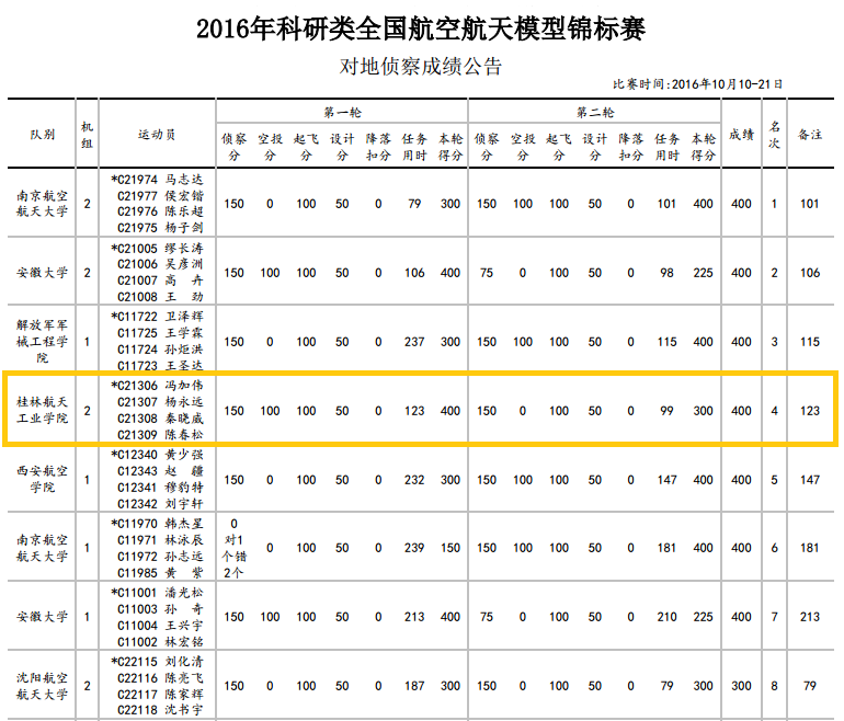 由国家体育总局、教育部和科技部联合主办的“2016年中国国际飞行器设计挑战赛暨‘科研类’全国航空航天模型锦标赛(简称CADC)”在10月15日至10月24日在江苏镇江举行,来自国内南京航空航天大学、沈阳航空航天大学等100所高校的2200多名选手参加了比赛。Beat365机械工程学院飞行器制造工程专业的9个参赛小组、电子信息与自动化学院的2个参赛小组的30多名学生代表学校参赛。