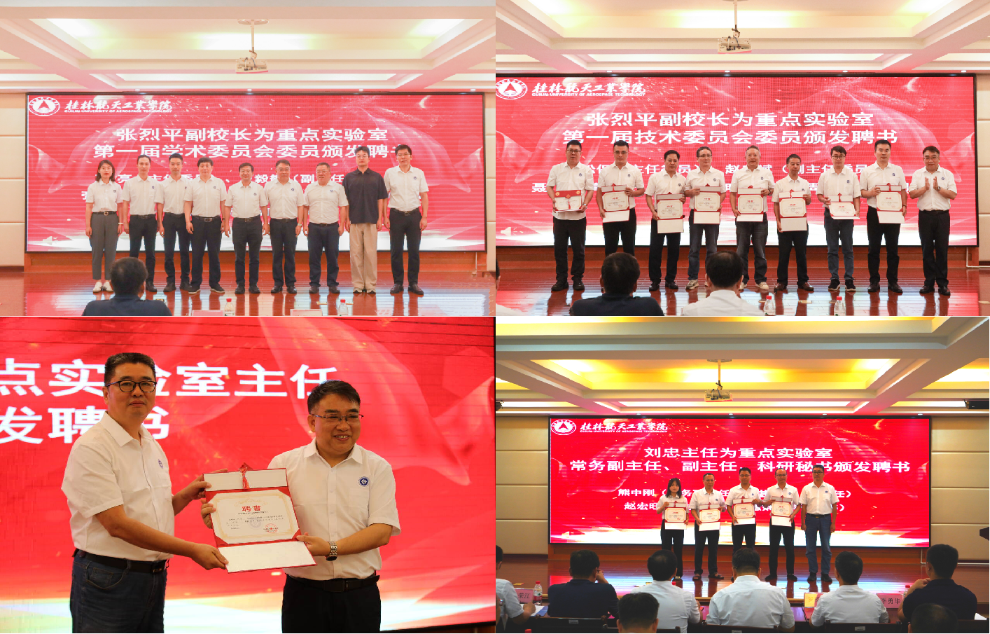 大会为广西特种工程装备与控制重点实验室揭牌,成立了实验室学术委员会、技术委员会,张烈平代表学校为委员颁发聘书。北京航空航天大学教授严亮及中航北京航空精密机械研究所研究员罗松保分别当选为学术委员会主任、技术委员会主任,并就实验室的定位、规划和作为提出了建设性的指导意见和美好的期待。