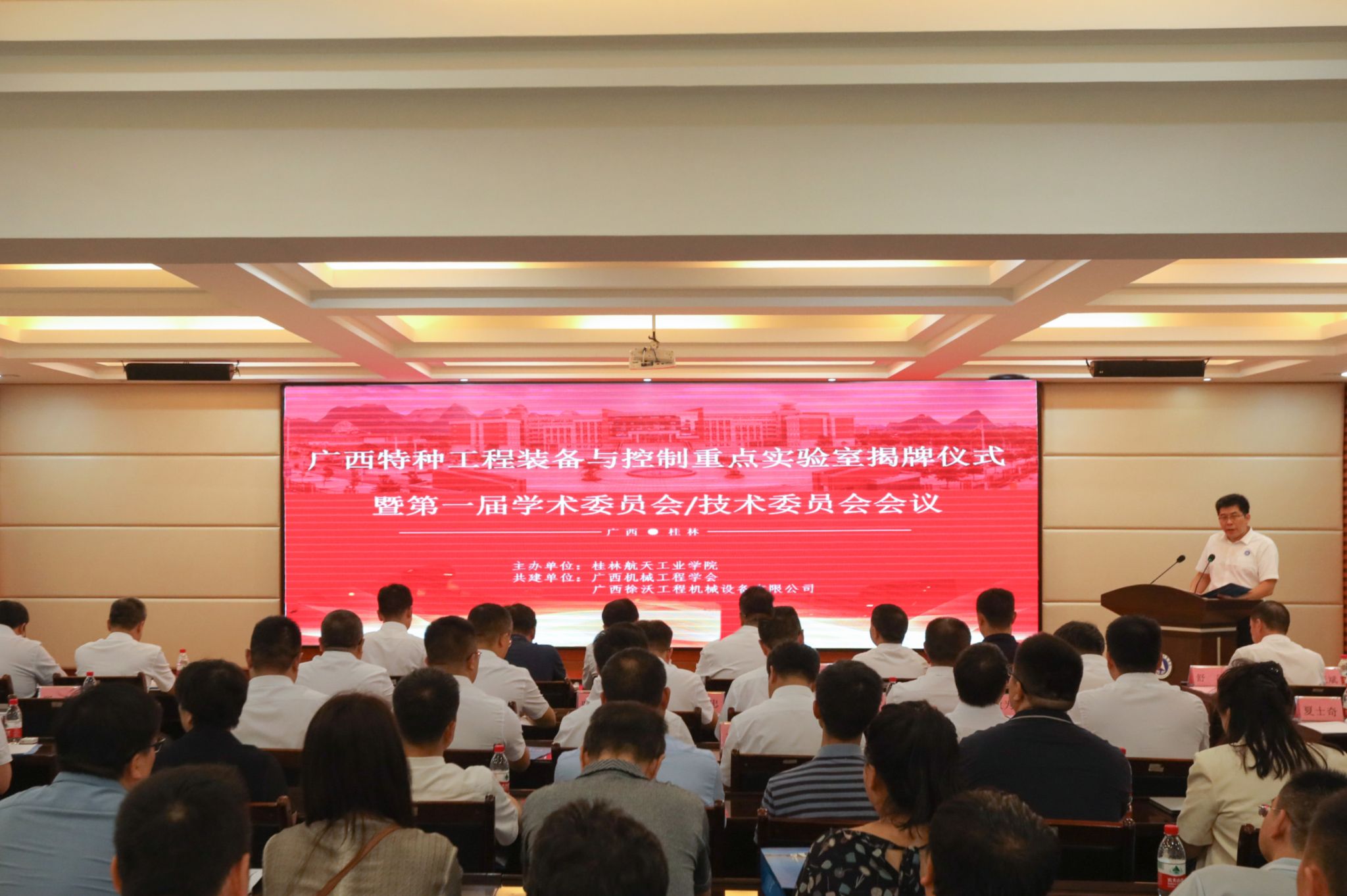 6月28日上午,Beat365首个自治区级广西特种工程装备与控制重点实验室揭牌仪式暨第一届学术委员会、技术委员会会议在飞天楼举行。学校党委书记韩峻峰、校长吴尽昭通过视频致辞,副校长张烈平现场致辞,发规处、人事处、科技处、财务处、国资处、机电工程学院、汽车工程学院、能源与建筑环境学院负责人及师生代表参加会议,学术界、企业界、桂林市科技局、工信局及广西机械工程学会等20余名嘉宾、学者到场指导。