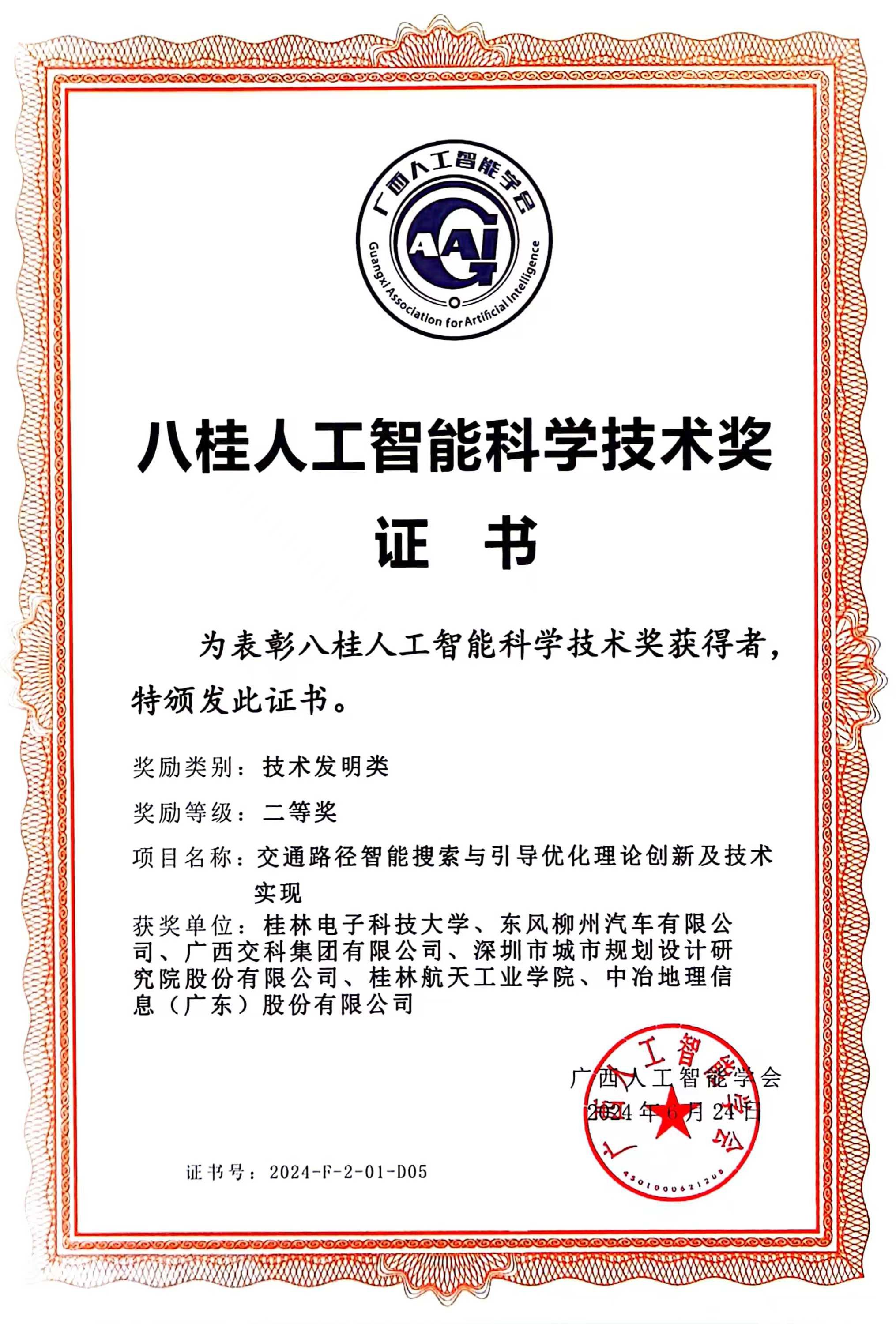与桂林电子科技大学等单位联合申报的《交通路径智能规划理论与优化方法创新及应用》项目荣获广西电子学会科学技术奖一等奖。该项目在交通规划领域提出了创新的理论和方法,对优化交通路径、提高交通效率具有重要意义。