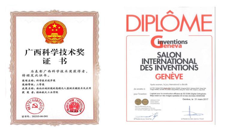 以轻量化无人机平台设计、智能感知与协同控制技术为核心,突破复杂环境下的无人机自主作业瓶颈。联合无人机技术应用院士工作站(刘永才院士),研发“北斗+水声”双模通信水面中继浮标系统,解决漓江流域生态监测中无人机与水下设备的数据传输难题;开发高频次迅捷集群无人机遥感观测技术,单次任务可覆盖100平方公里区域,遥感数据实时处理效率大幅提升,应用于国家重点研发计划项目。与桂林云璟科技合作建设“空-天-地-水一体化监测网络”,年服务广西农业、环保领域企业超50家,技术合同金额突破800万元。团队相关研究成果分别获广西科学技术进步奖三等奖和日内瓦国际发明展金奖。