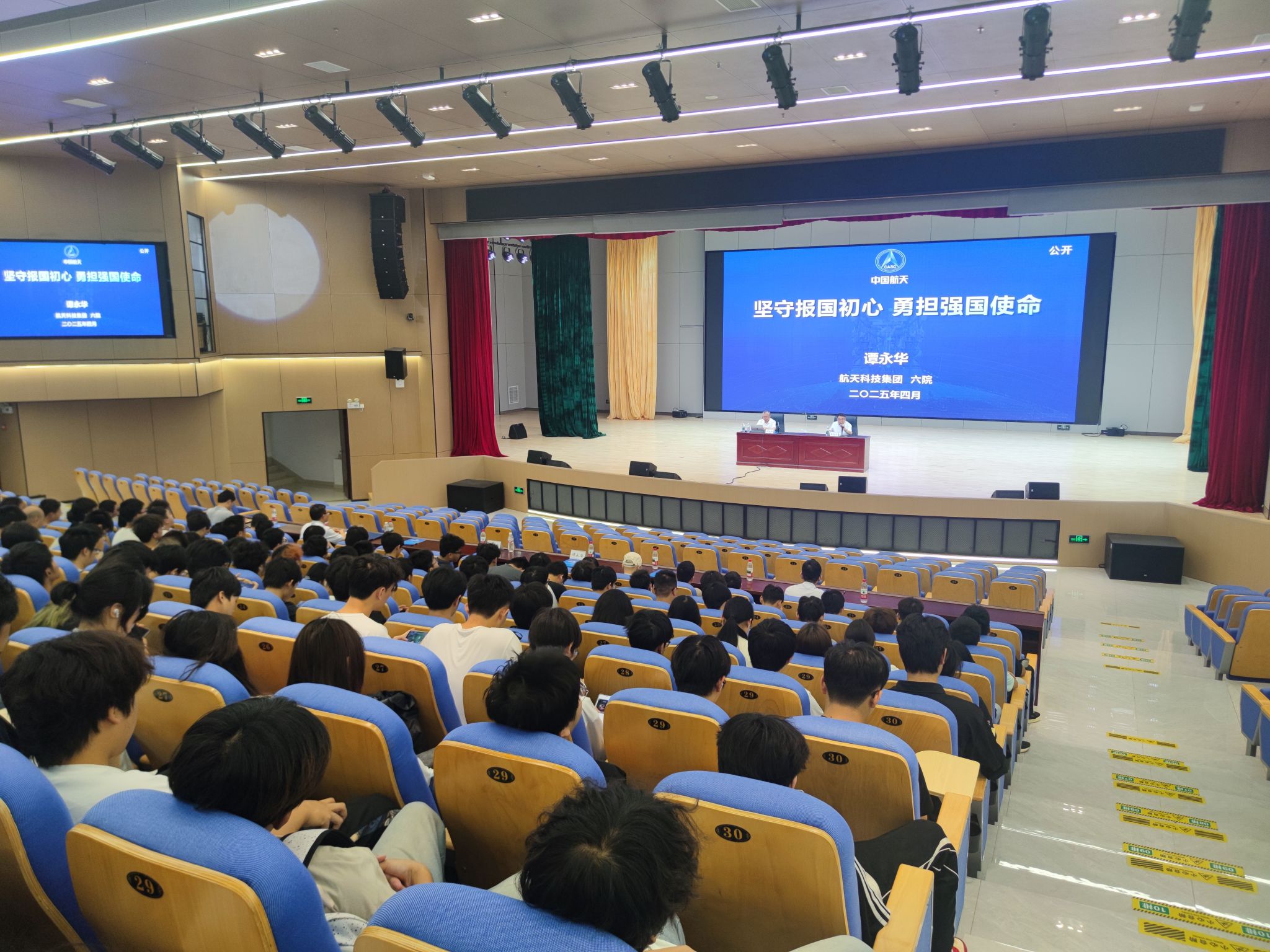 4月28日上午,航天动力技术专家、航天液体动力全国重点实验室主任谭永华研究员受邀在问天楼报告厅作《坚守报国初心 勇担强国使命》的专题报告,吸引400余名学生到场聆听。