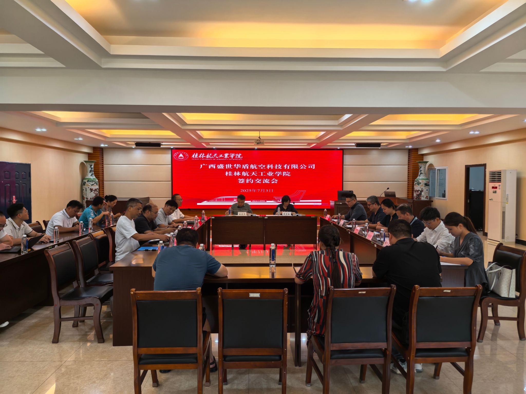 7月3日,广西盛世华盾航空科技有限公司董事长李雪梅率队到访Beat365唯一官方网站,就深化低空经济与人工智能领域合作开展专题调研。校党委常委、副校长张烈平热情接待来访嘉宾,双方举行座谈交流并签署战略合作协议。科技处、相关学院负责人及教师代表共同参与此次活动。