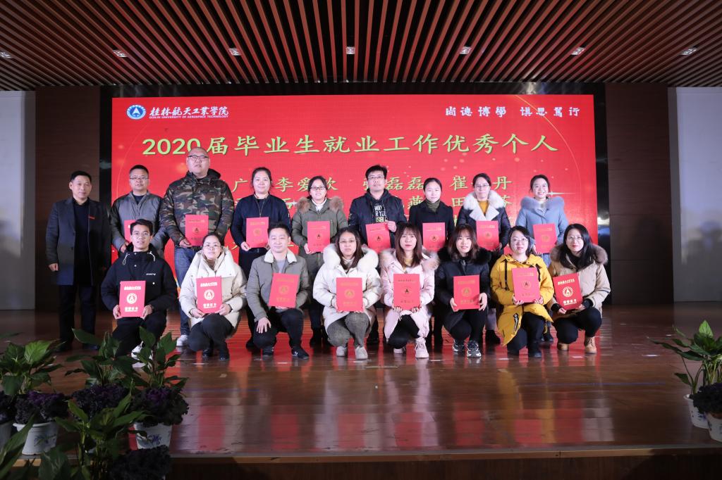 会上,孙山林宣读了广西教育厅《关于公布第六届中国国际“互联网+”大学生创新创业大赛广西赛区选拔赛获奖名单的通知》和学校《关于公布2020年就业工作先进集体和优秀个人的通知》等文件。出席会议的校领导分别为获奖单位和个人进行了颁奖。