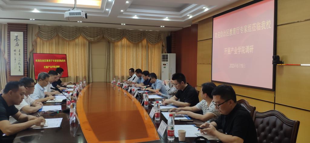 6月19日,广西普通高校示范性现代产业学院建设情况调研组组长、广西师范大学职业技术师范学院院长王晞及调研组成员一行8人来校调研交流。学校副校长李智、教务处、汽车工程学院负责人及师生代表参加了座谈会。