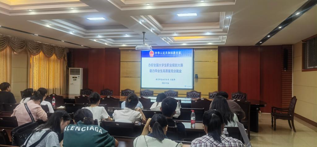 9月27日下午,教育部召开首届全国大学生职业规划大赛视频培训会,学校2024届毕业班辅导员及就业中心相关工作人员在飞天楼517分会场参加会议。