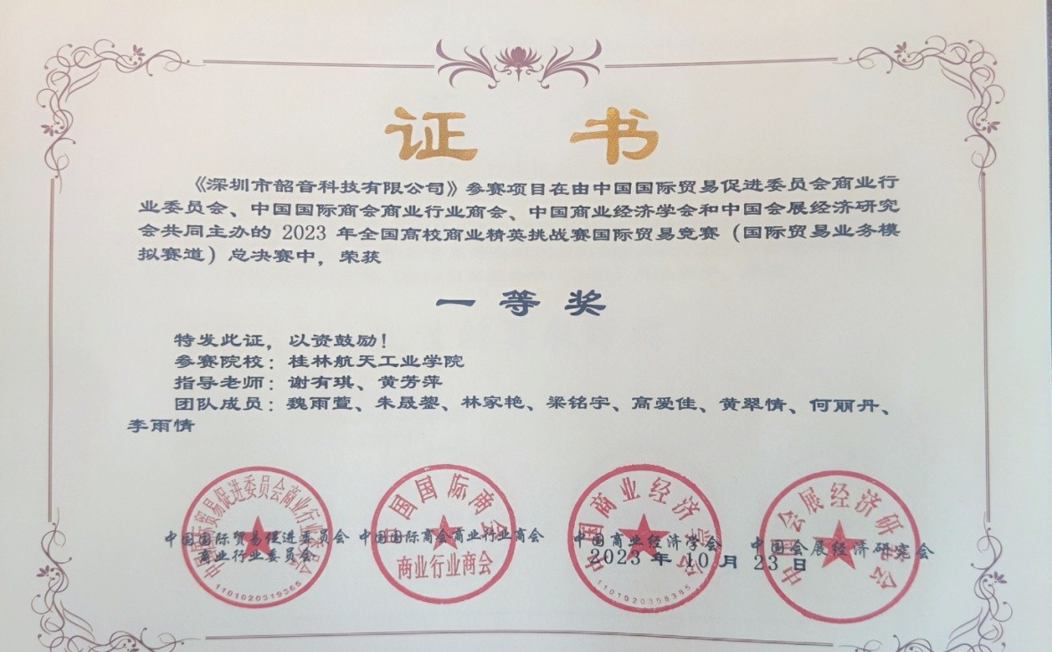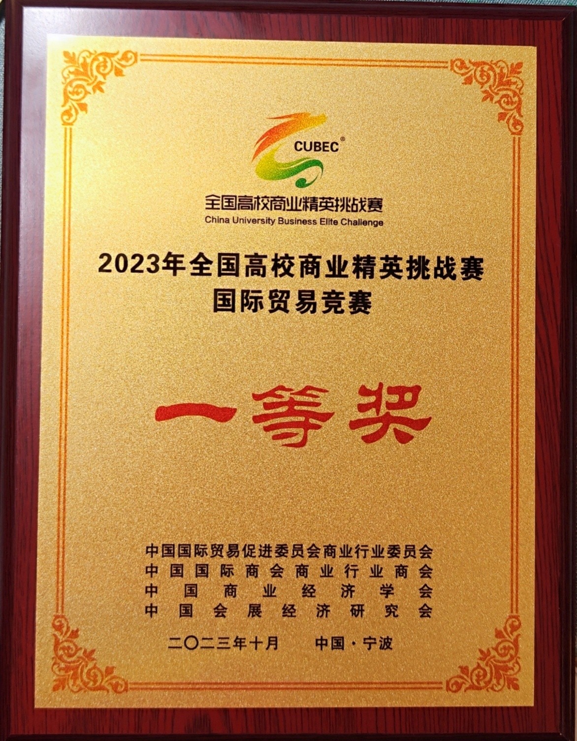 10月18-23日,第十三届全国高校商业精英挑战赛(全国总决赛)在浙江宁波举行。外语外贸学院学生团队魏雨萱、朱晟鋆、林家艳、梁明宇、高爱佳、李雨晴、黄翠情、何丽丹等八名同学在谢有琪和黄芳萍两位指导老师的指导下荣获全国总决赛一等奖,延续了外语外贸学院在该赛事上连续三年获得一等奖的优良成绩。