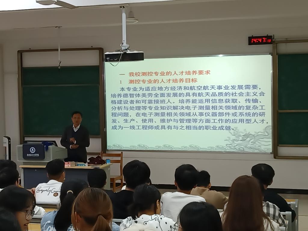 11月10日,学校副校长李智教授在探天楼B302阶梯教室为电子信息与自动化学院2023级测控技术与仪器专业新生讲授了专业导论课。李智围绕人才培养要求、知识体系、课程体系、专业就业与考研等内容为学生们进行了生动的讲述。