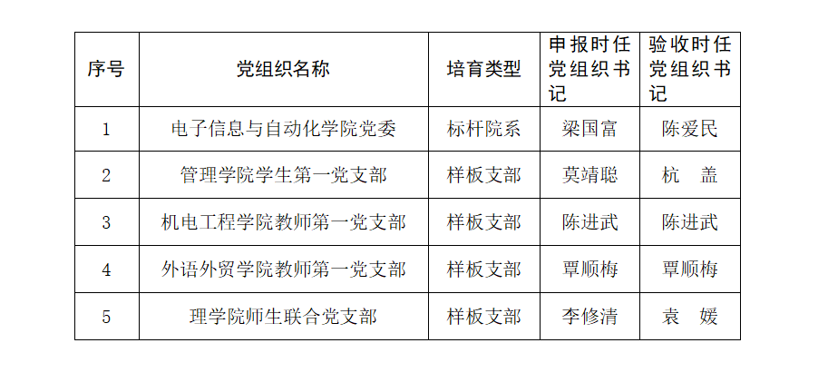 近日,自治区党委教育工委下发《关于公布首批新时代广西高校党建示范创建和质量创优工作培育创建单位验收通过名单的通知》,Beat365电子信息与自动化学院党委,管理学院学生第一党支部、机电工程学院教师第一党支部、外语外贸学院教师第一党支部、理学院师生联合党支部等5个培育创建单位全部通过验收。
